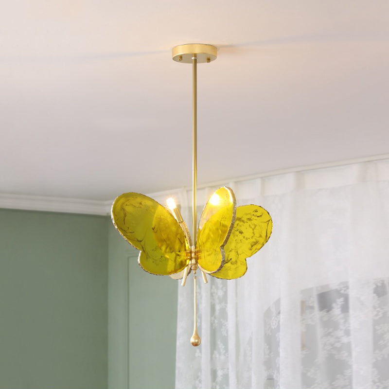 مصباح معلق عصري إبداعي على شكل فراشة مصنوع من الراتنج، مزود بمصباحين لغرفة النوم