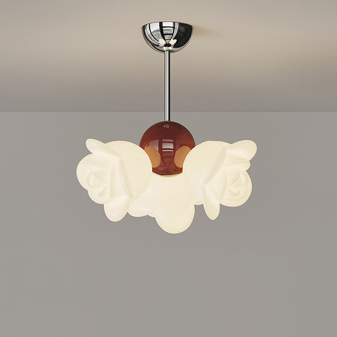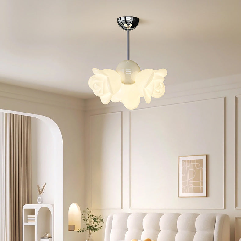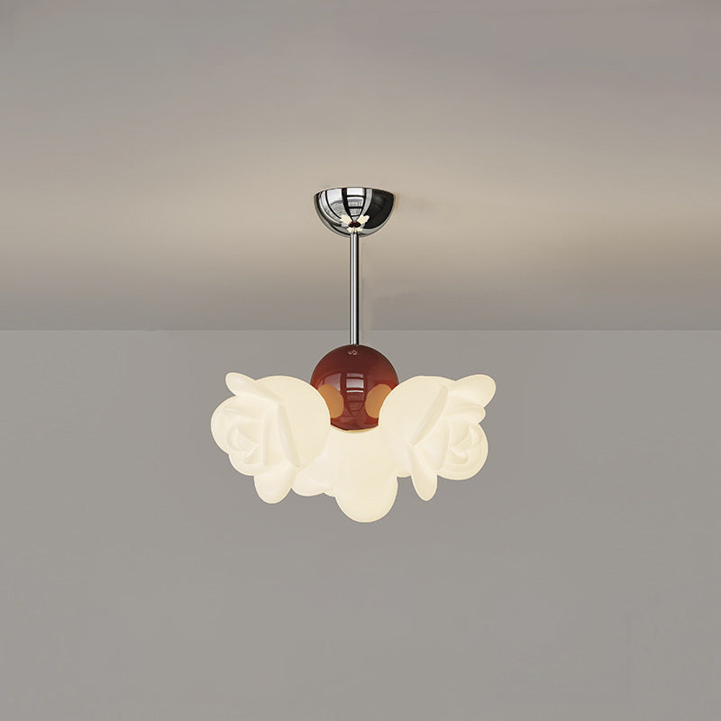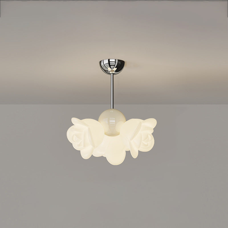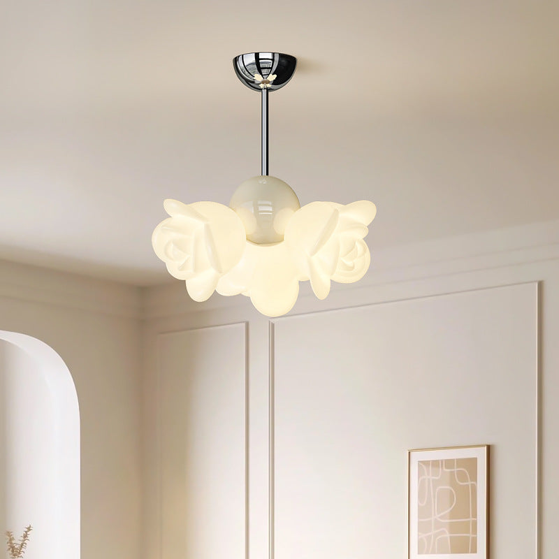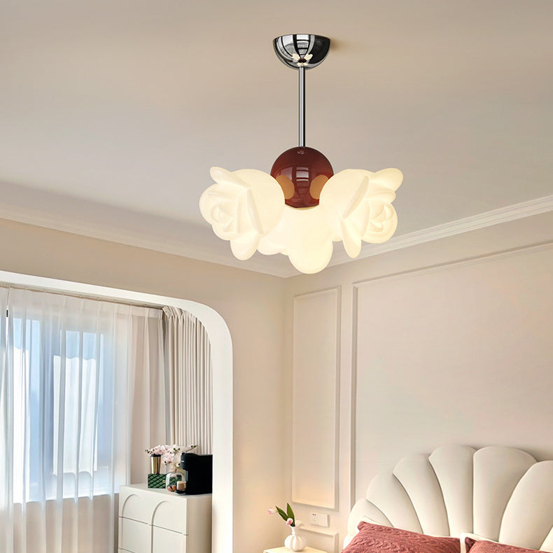 ثريا معاصرة إبداعية من الحديد الزهري الكريمي بثلاثة مصابيح لغرفة النوم