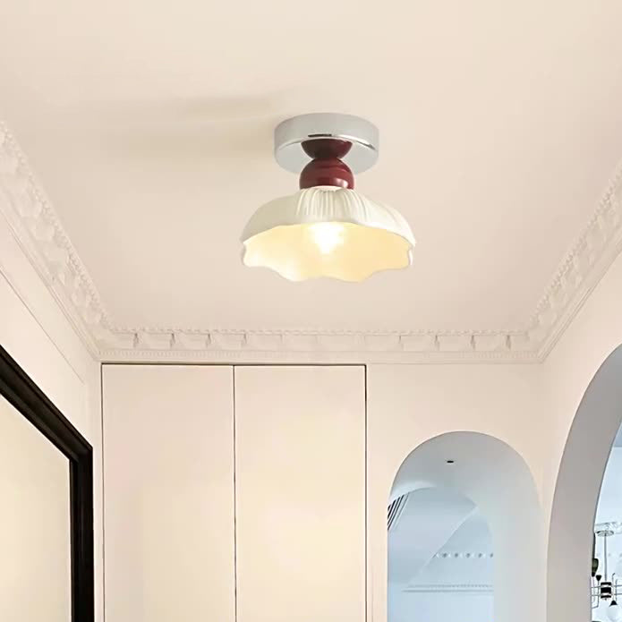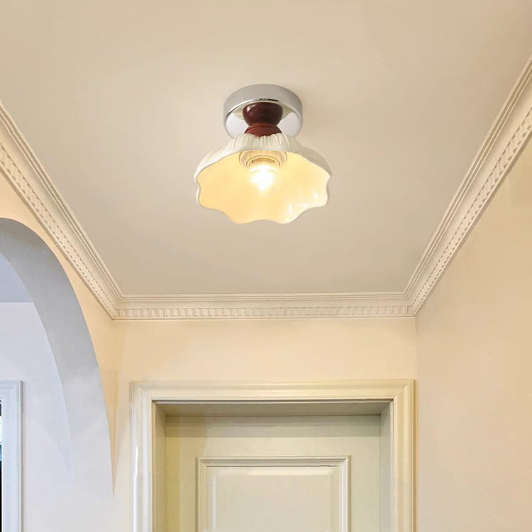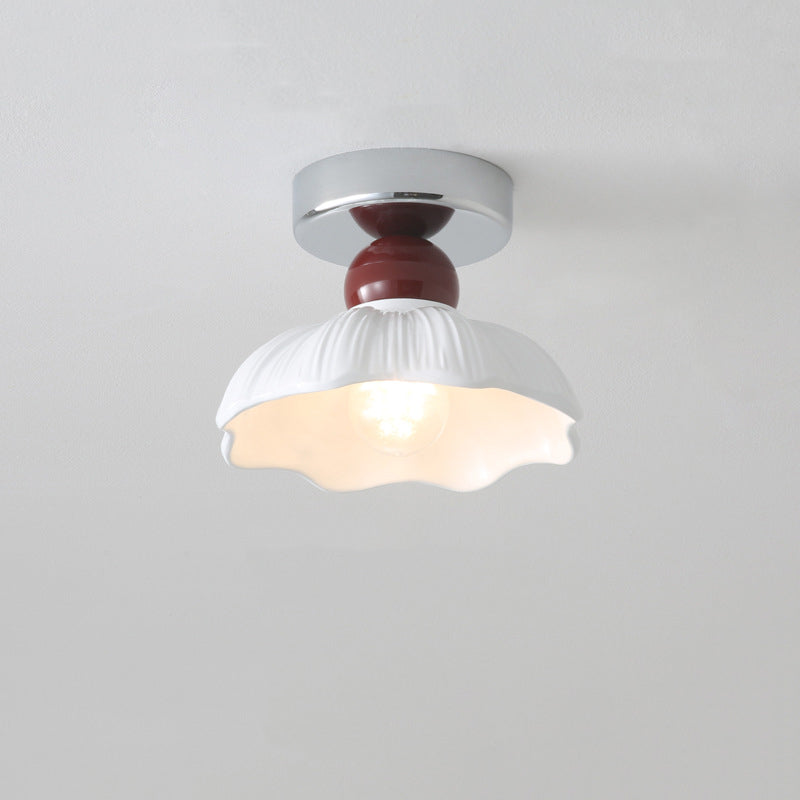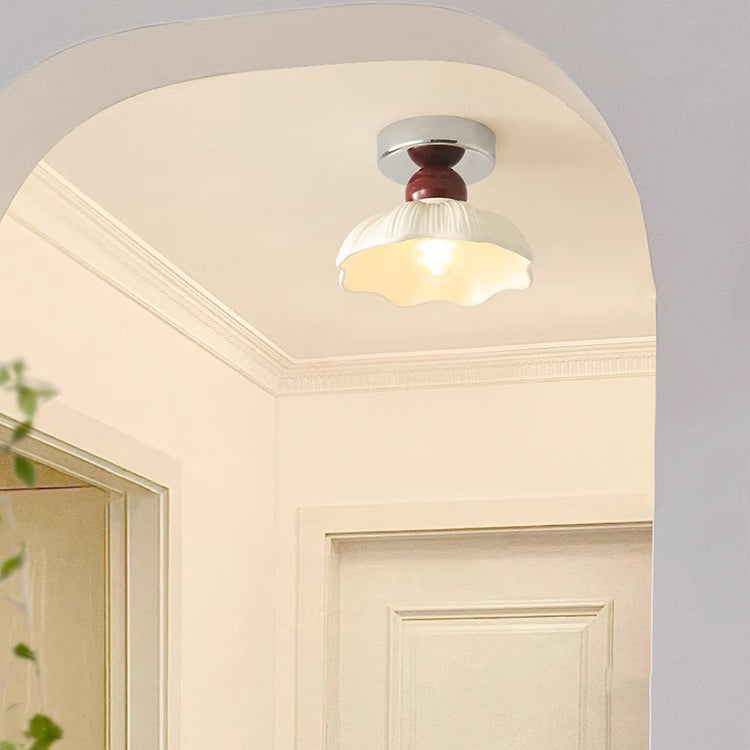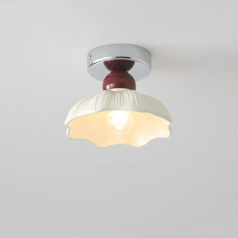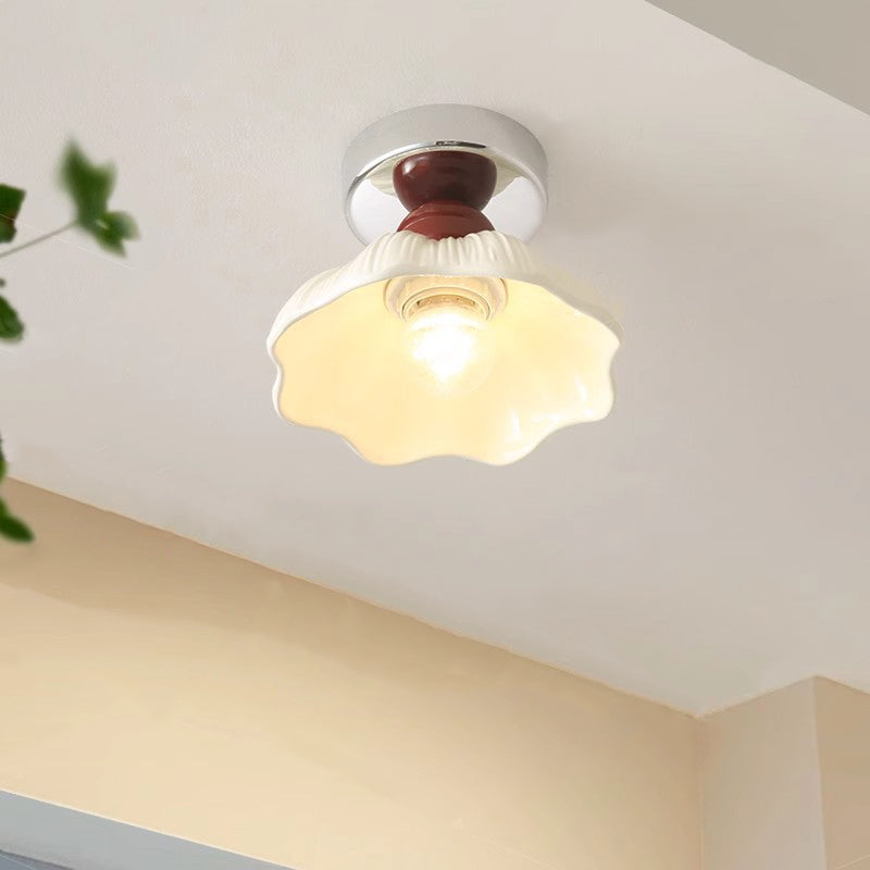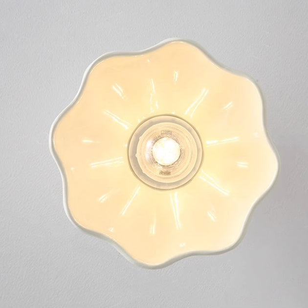 مصباح سقف شبه مدمج بتصميم زهرة كريمية معاصرة ومبتكرة، مزود بمصباح واحد، لغرفة المعيشة