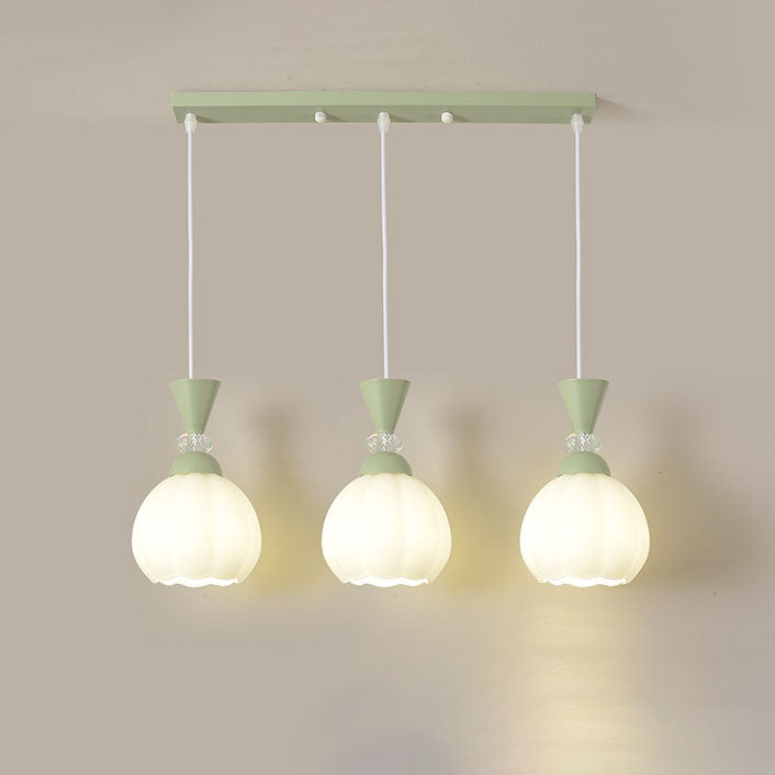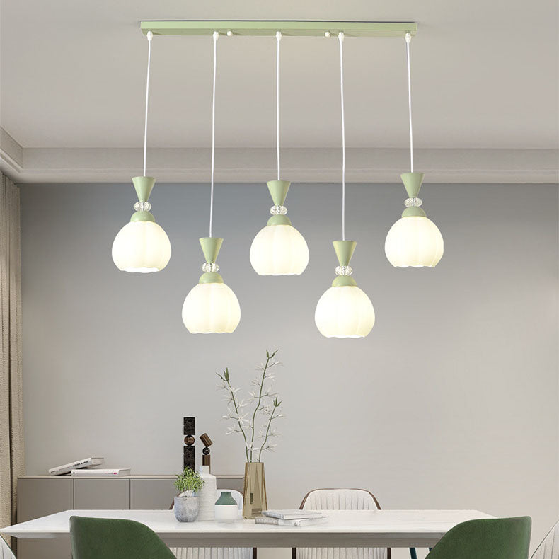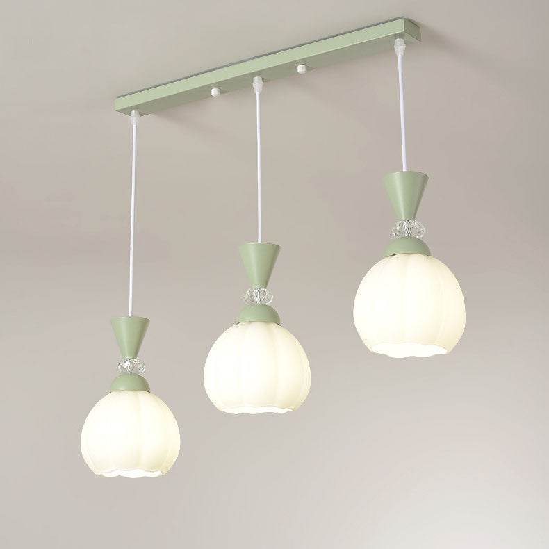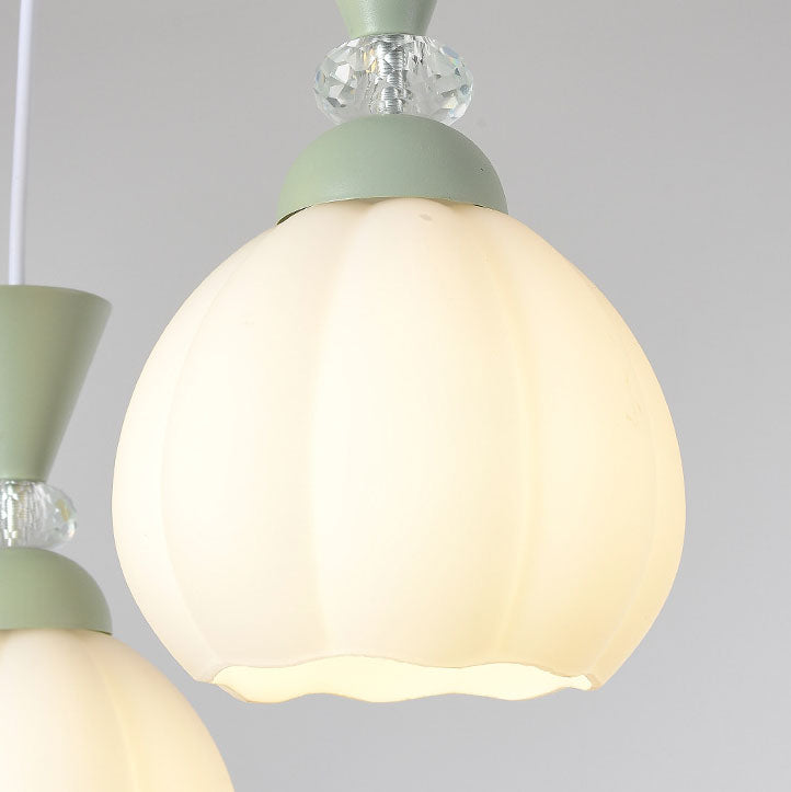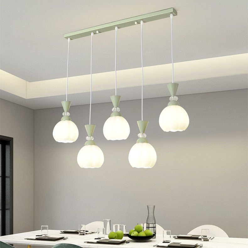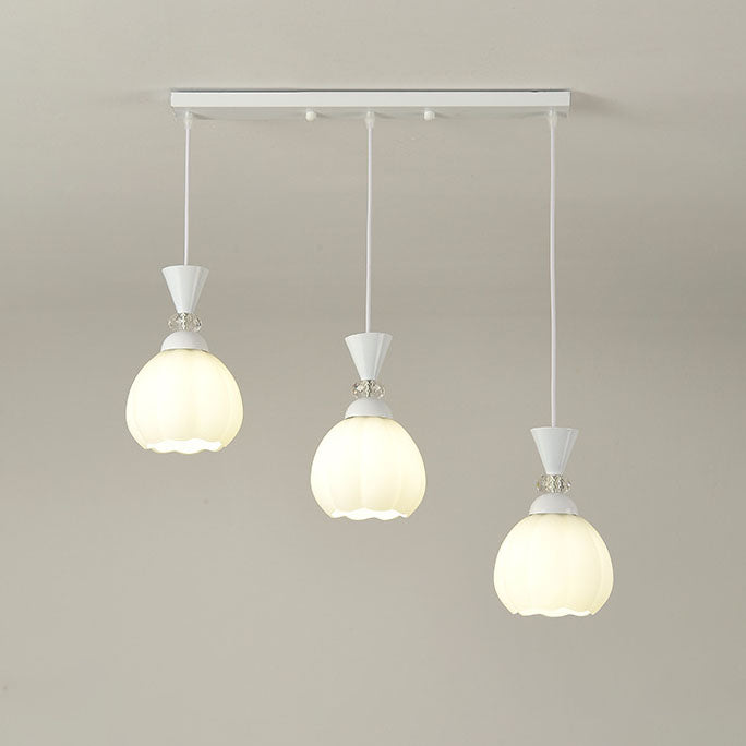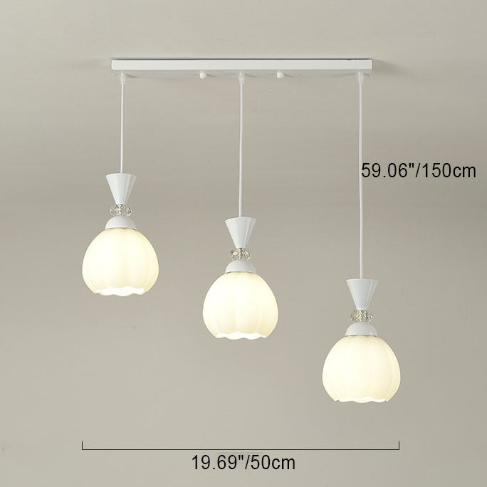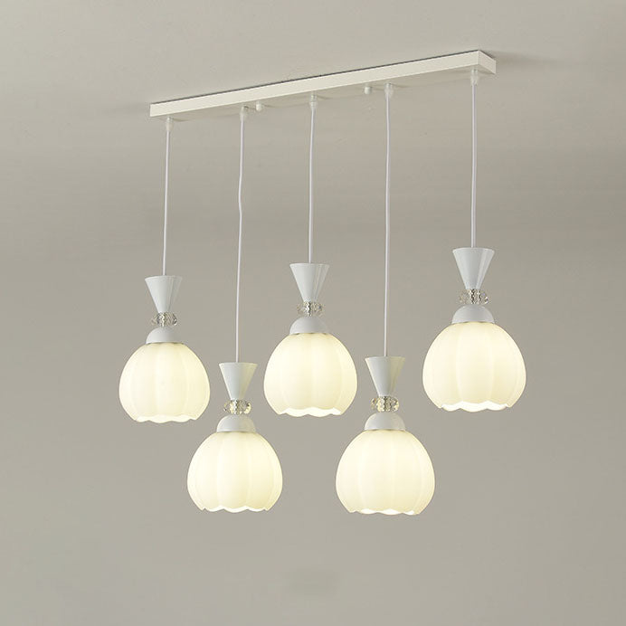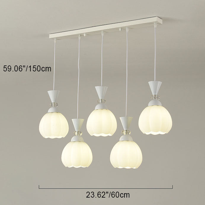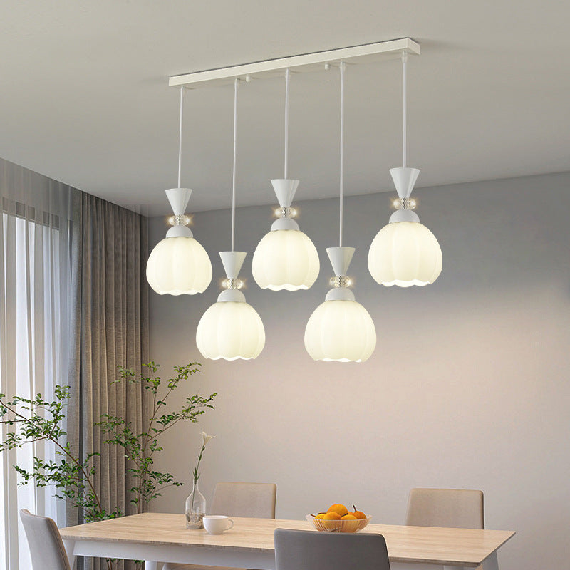 ثريا عصرية مبتكرة من الزجاج الكريمي على شكل براعم زهور من الحديد، مزودة بإضاءة جزيرة 3/5 ضوء لغرفة النوم
