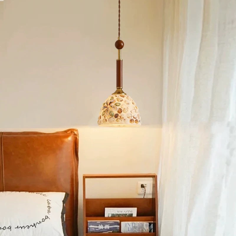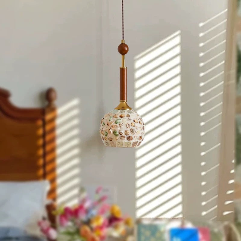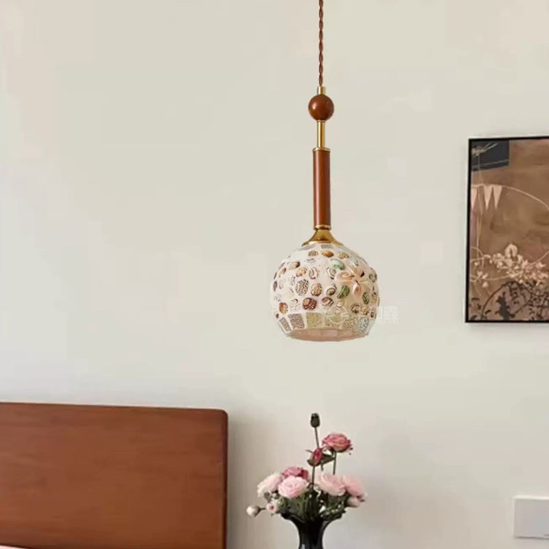 مصباح معلق عصري إبداعي على شكل أسطوانة زجاجية خشبية من الحديد مزود بمصباح واحد لغرفة النوم