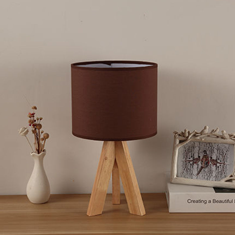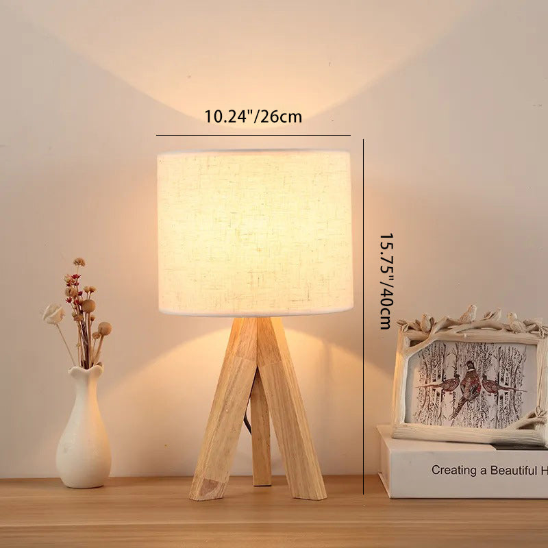 Contemporary Creative Cylinder Wood Fabric 1-Light Table Lamp For Living Room