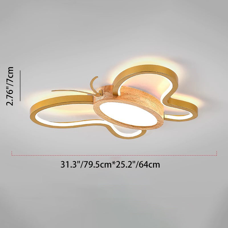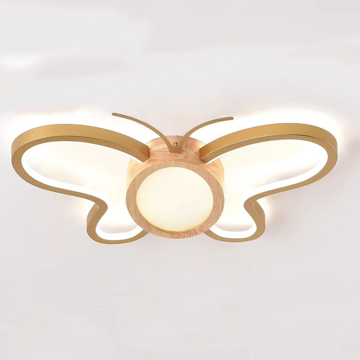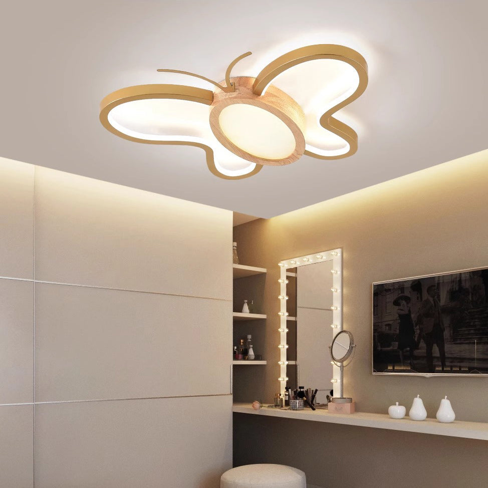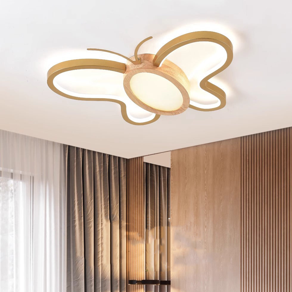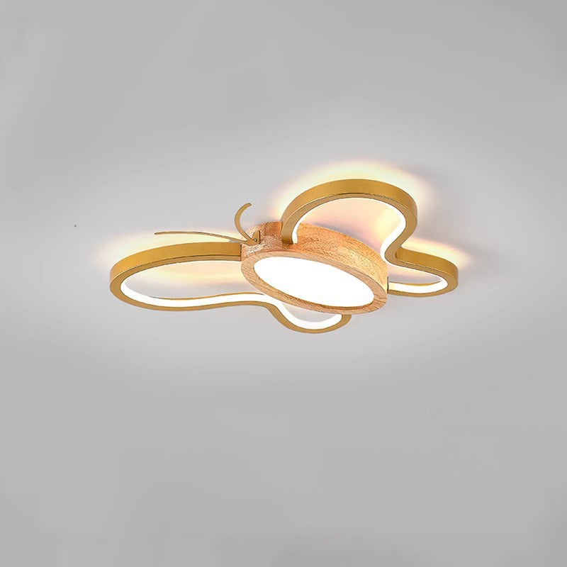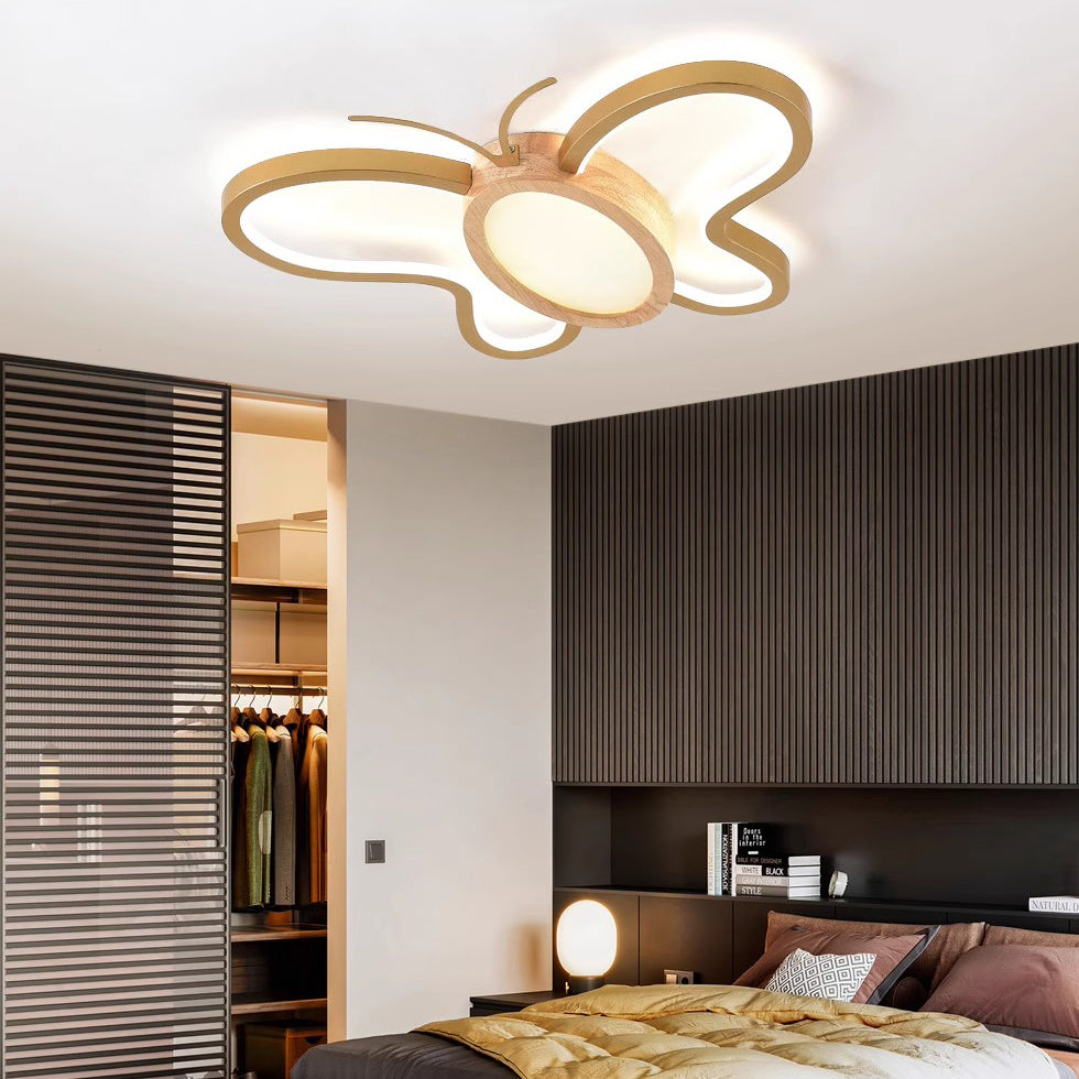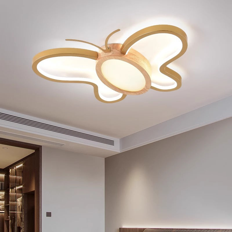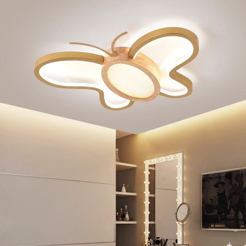 مصباح سقف LED مدمج مصنوع من خشب المطاط الأكريليكي بتصميم فراشة معاصر ومبتكر لغرفة النوم