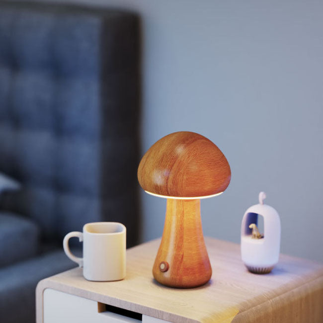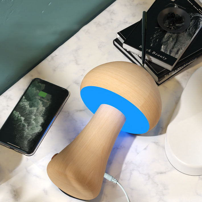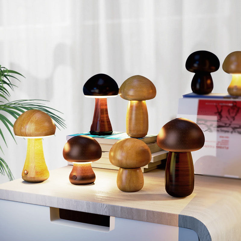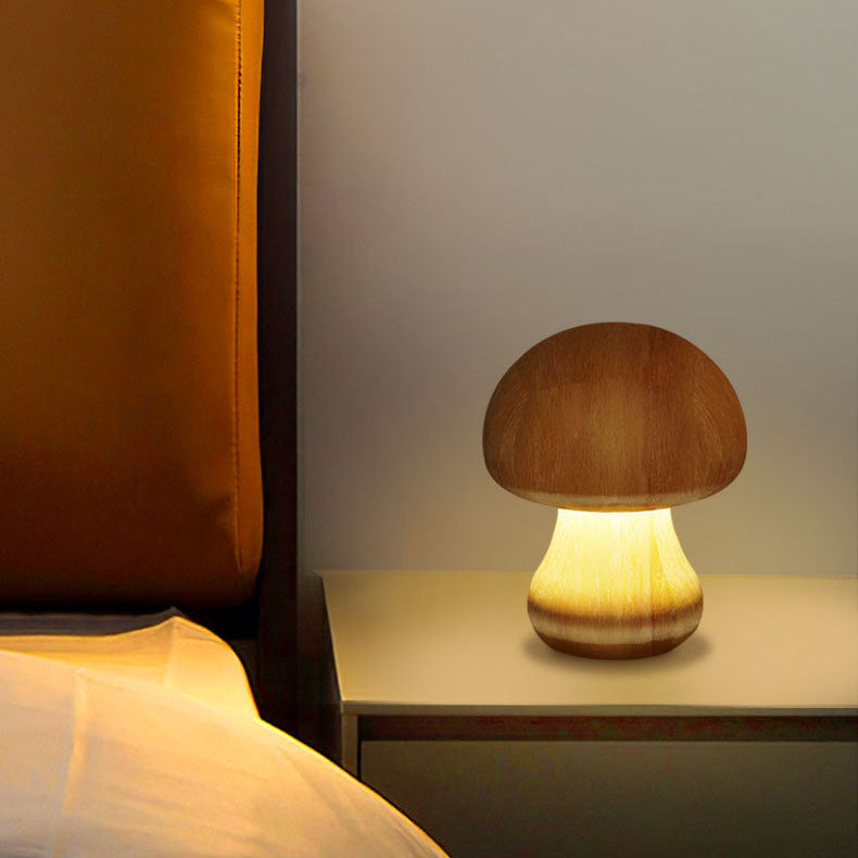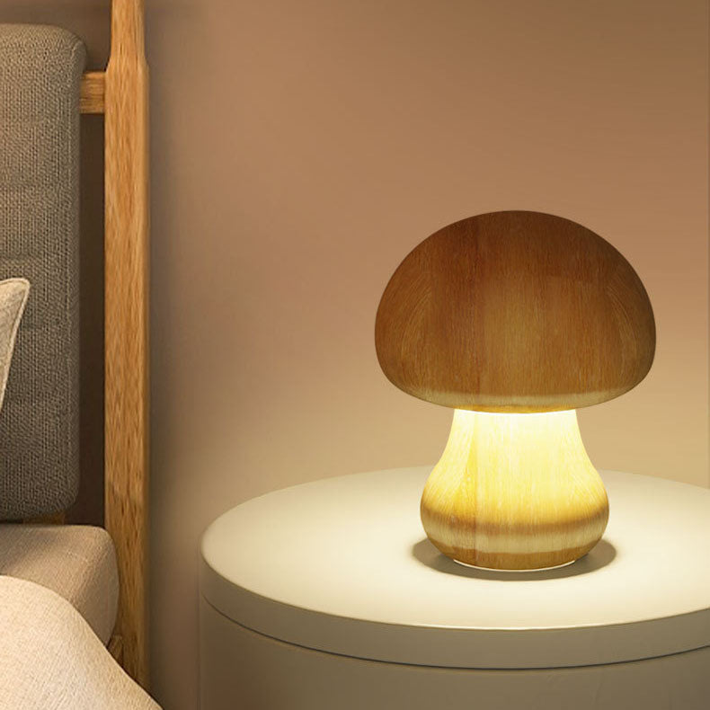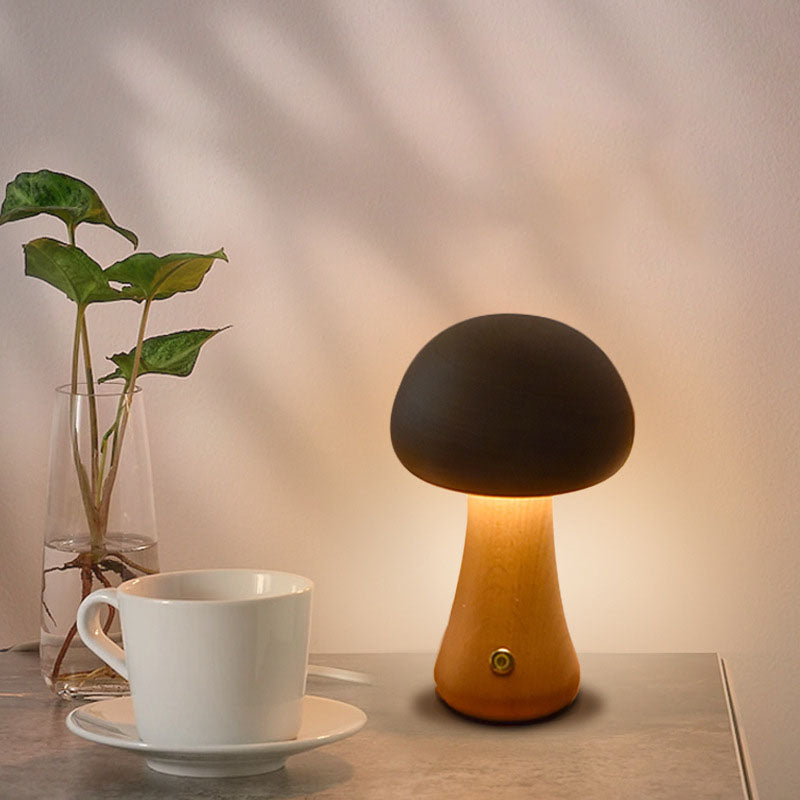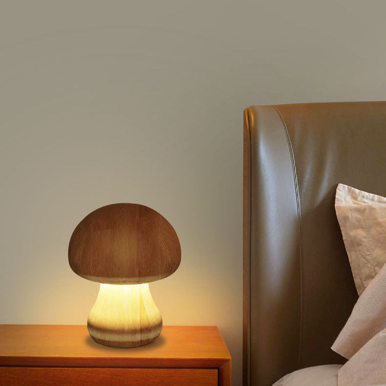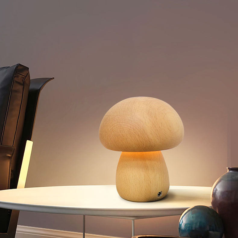 Contemporary Creative Mushroom Rubberwood Beechwood LED Table Lamp For Bedroom