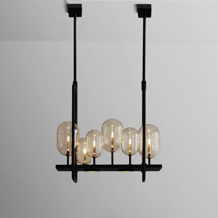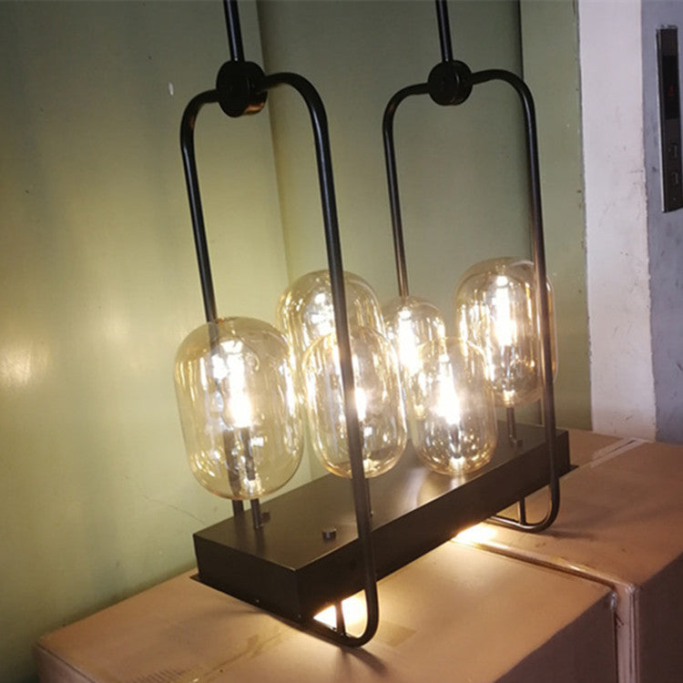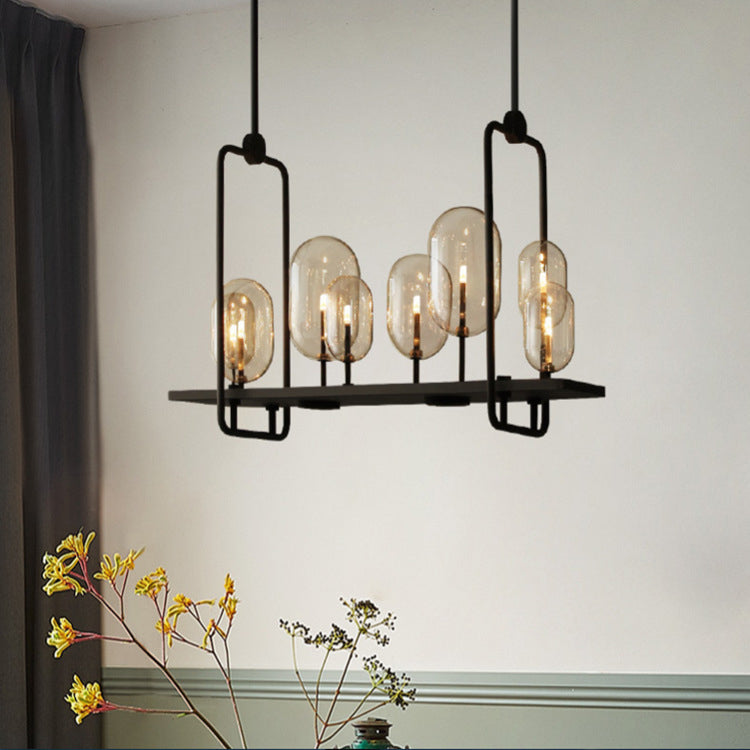 ثريا جزيرة LED بتصميم عصري إبداعي مستطيل الشكل من الحديد والزجاج بستة مصابيح لغرفة المعيشة