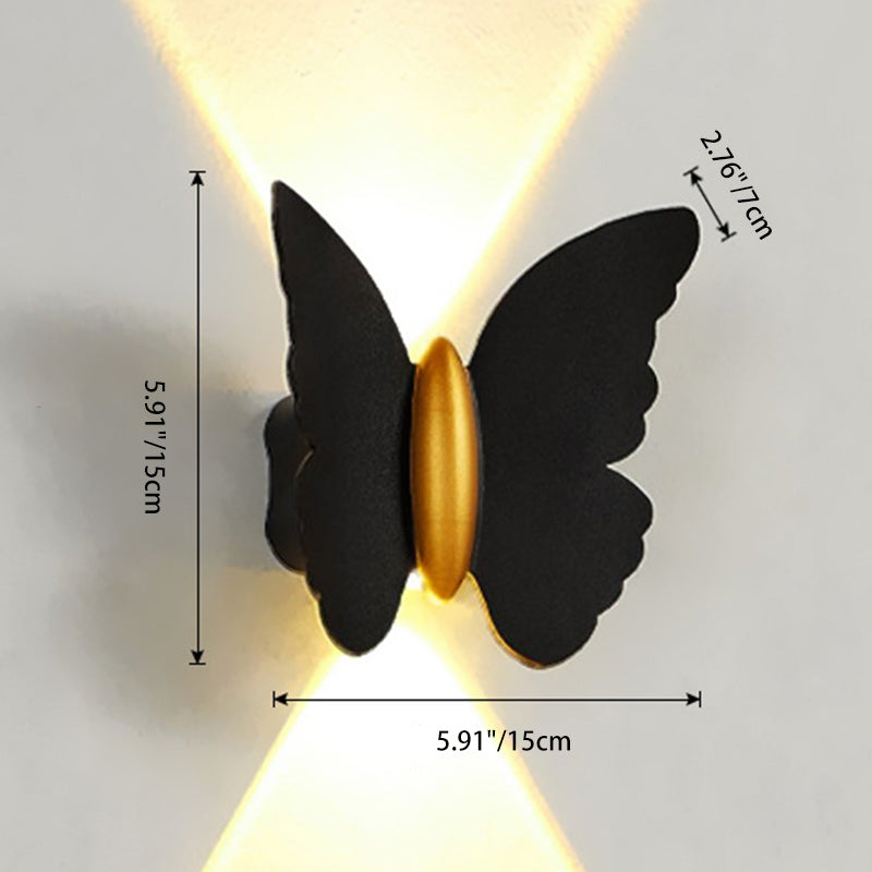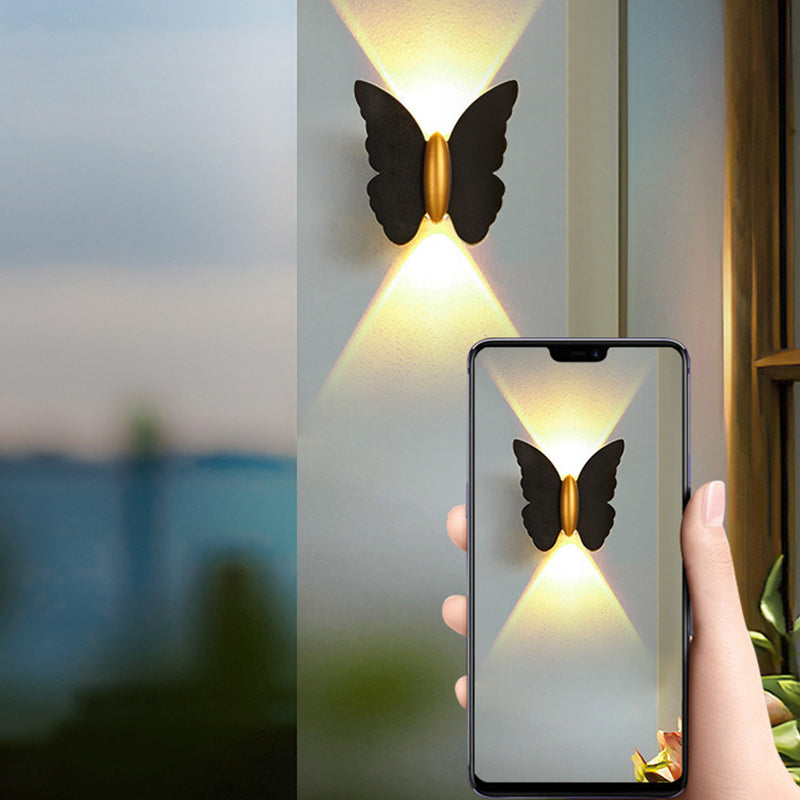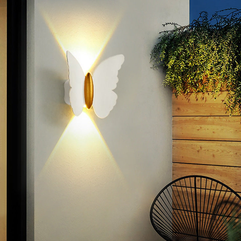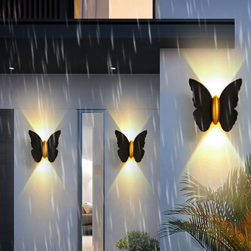 مصباح حائط LED عصري إبداعي مقاوم للماء على شكل فراشة من الألومنيوم وعدسة بصرية للاستخدام في الهواء الطلق