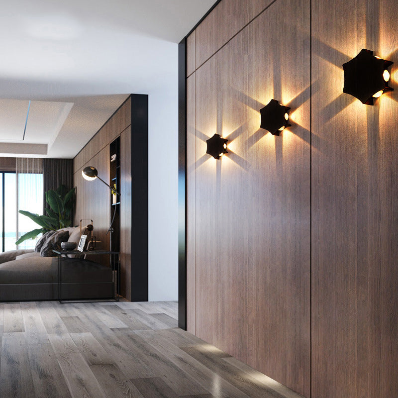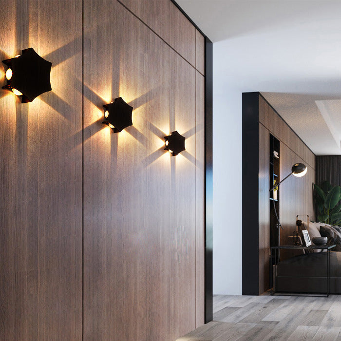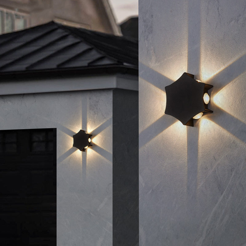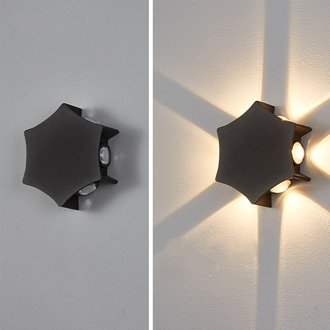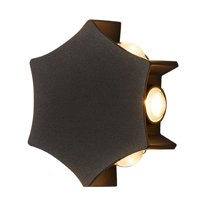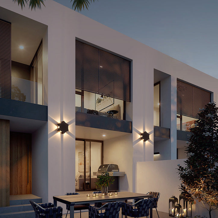 مصباح حائط خارجي معاصر من الألومنيوم الصناعي المنحني سداسي الشكل LED مقاوم للماء للحديقة