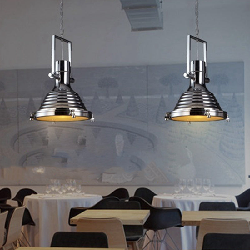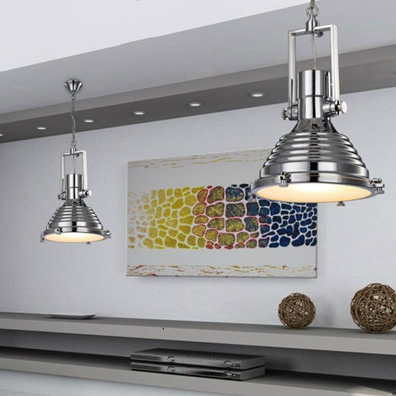 يتميز هذا المصباح المعلق ذو الطراز الصناعي بتصميم معدني جريء وثقيل، وهيكل من الحديد، وغطاء دائري أنيق. تتيح السلسلة القابلة للتعديل ضبط الارتفاع، مما يجعله مثاليًا لغرف الطعام والمعيشة والحانات والمقاهي. مطلي بمرآة مطلية كهربائيًا، ومطلي باللون الأسود المخبوز، لإضفاء مظهر عصري أخاذ.