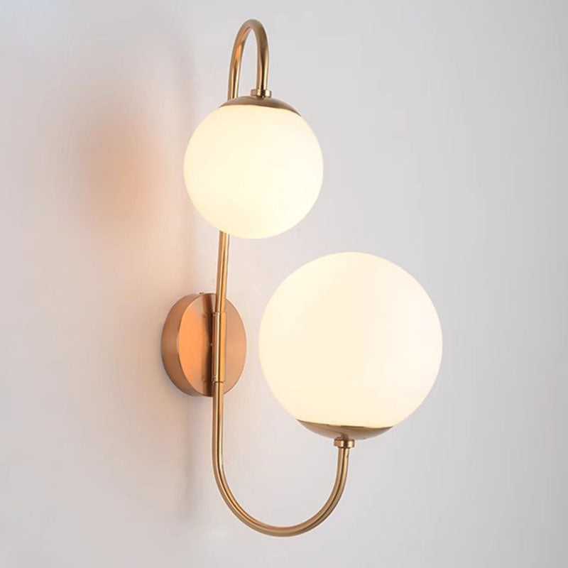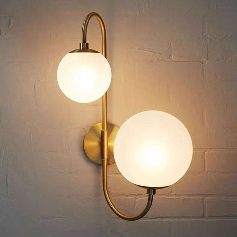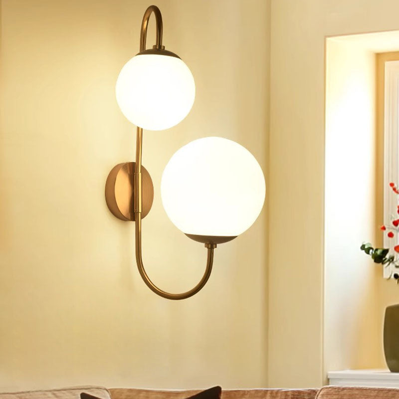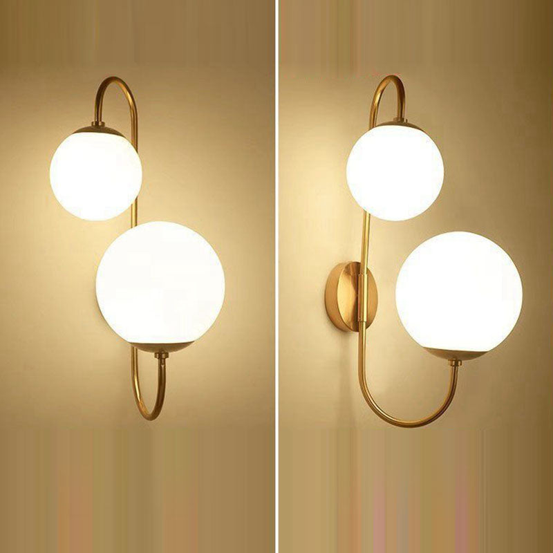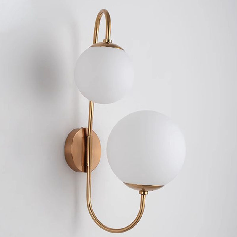 مصباح حائطي عصري صناعي على شكل فاصوليا سحرية مستديرة منحنية من الزجاج والحديد مزود بمصباحين لغرفة النوم
