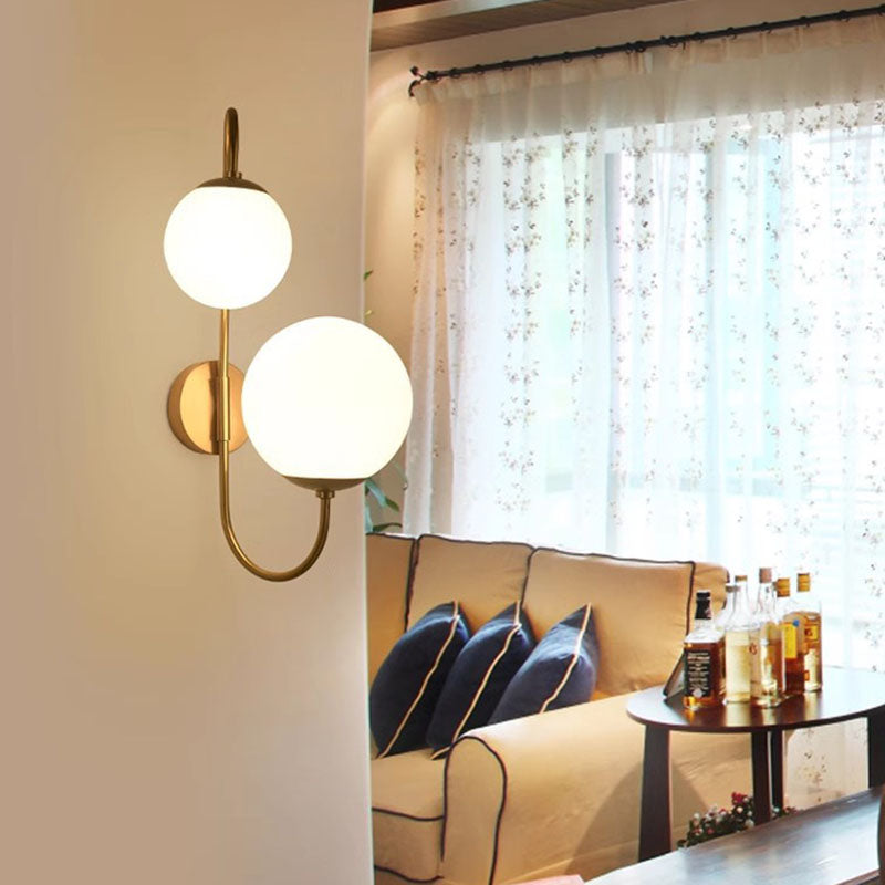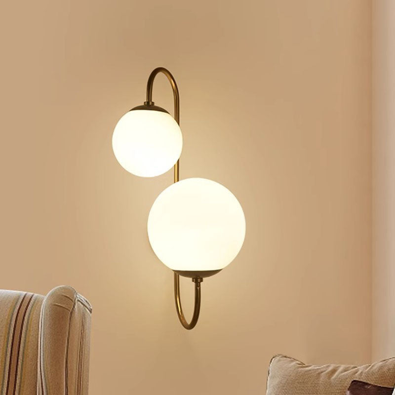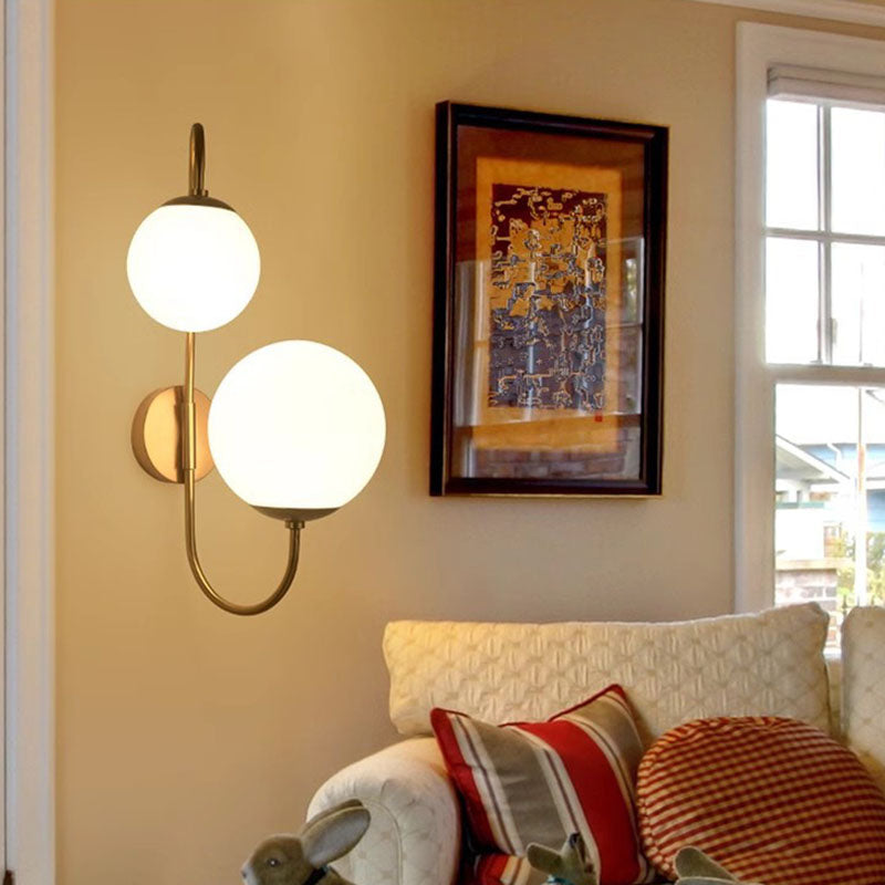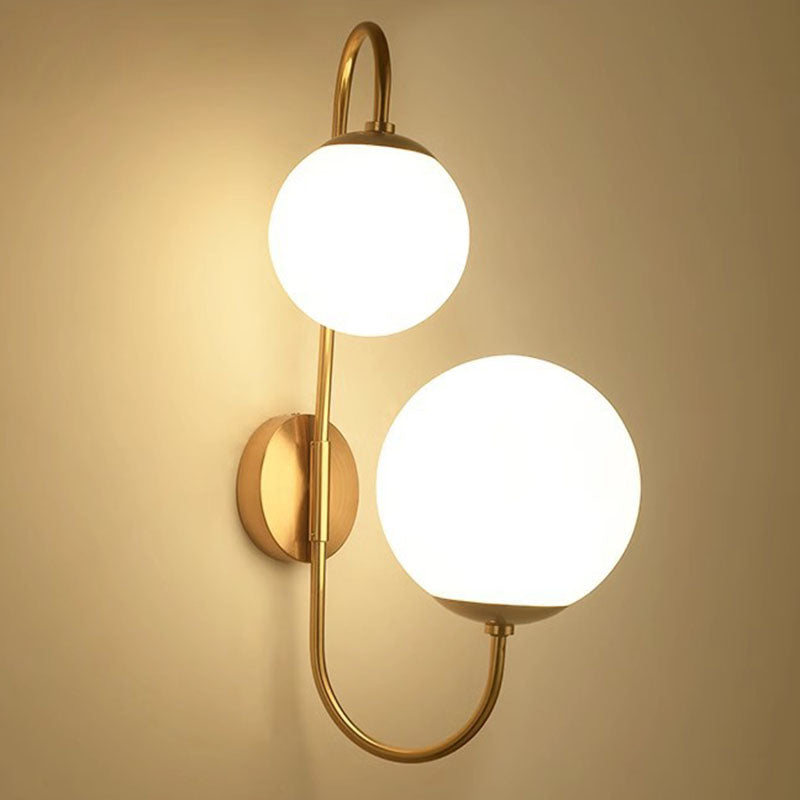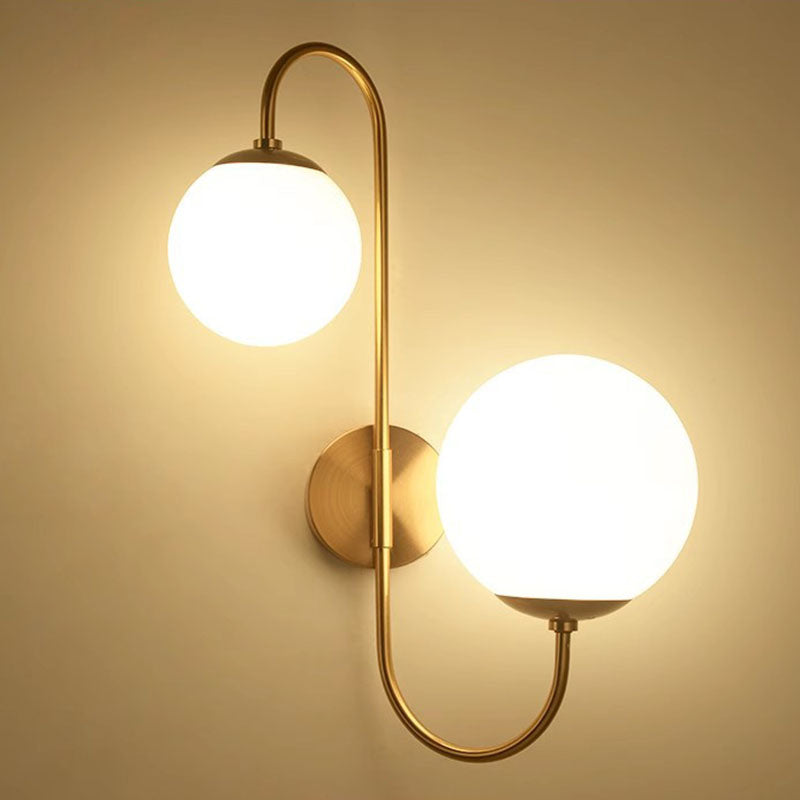 مصباح حائطي عصري صناعي على شكل فاصوليا سحرية مستديرة منحنية من الزجاج والحديد مزود بمصباحين لغرفة النوم