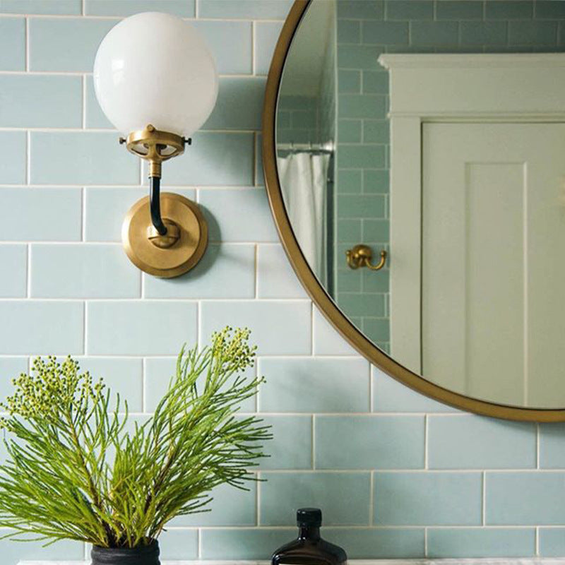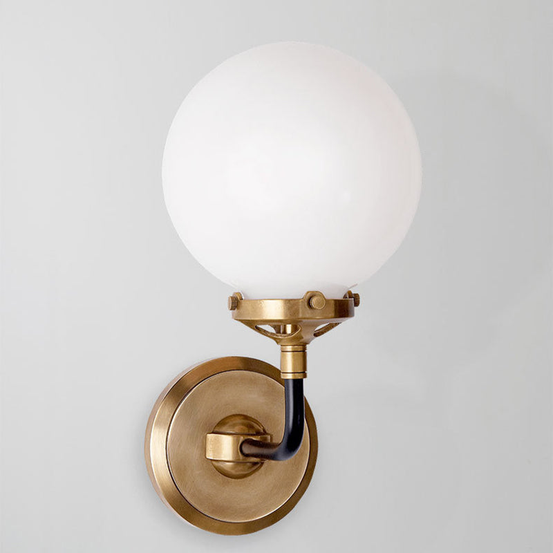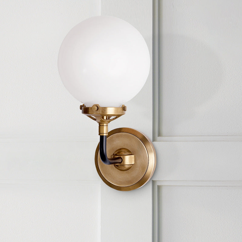 مصباح حائط دائري من الزجاج والنحاس بتصميم صناعي معاصر لغرفة المعيشة بنصف ضوء