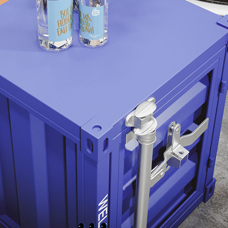 Contemporary Industrial Rectangular Striped Container Iron Nightstand For Bedroom