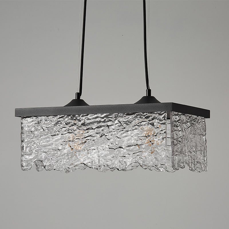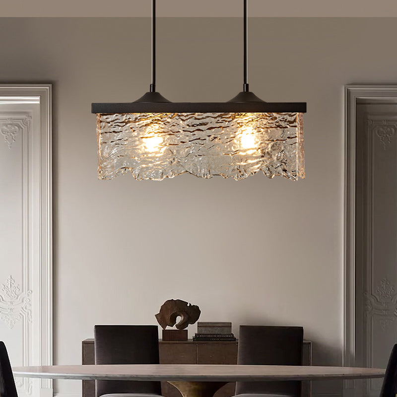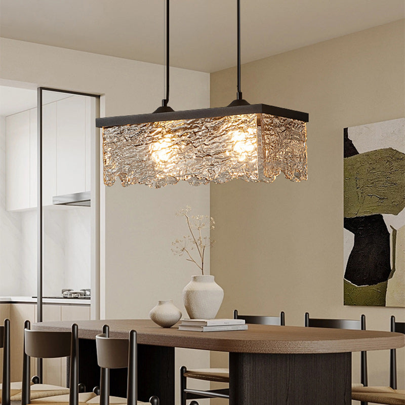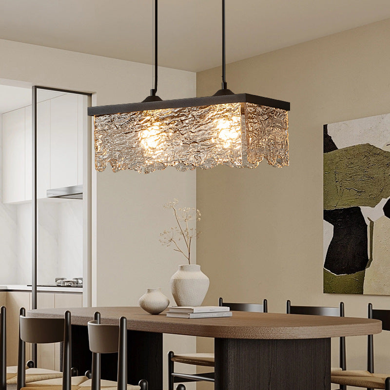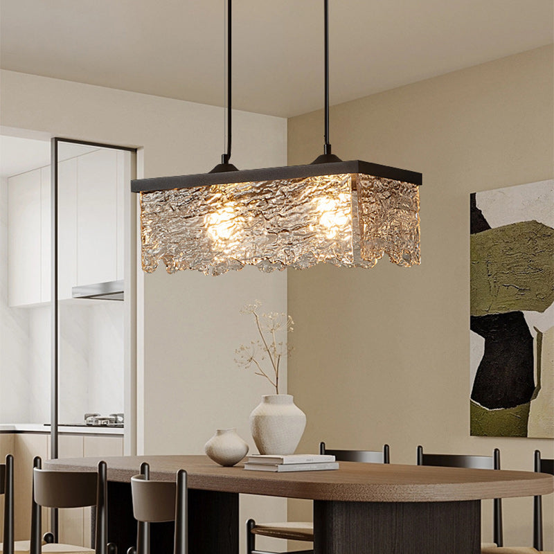 ثريا صناعية معاصرة مستطيلة الشكل مصنوعة من الحديد والزجاج بنصف ضوء لغرفة الطعام