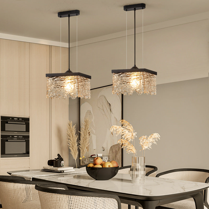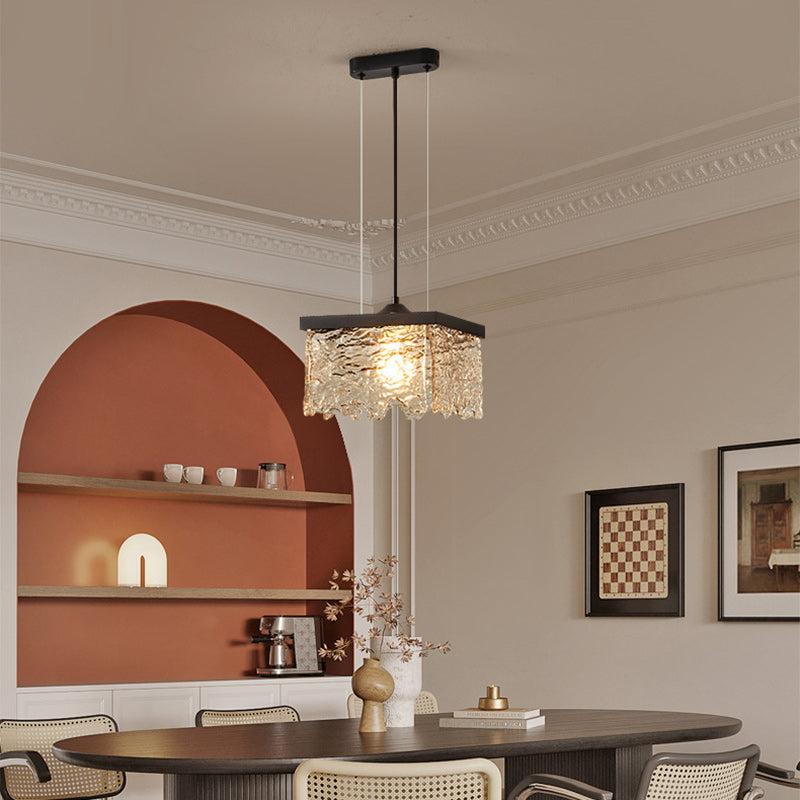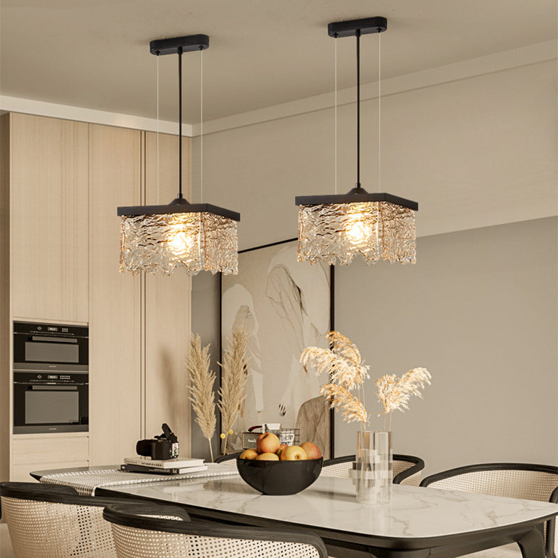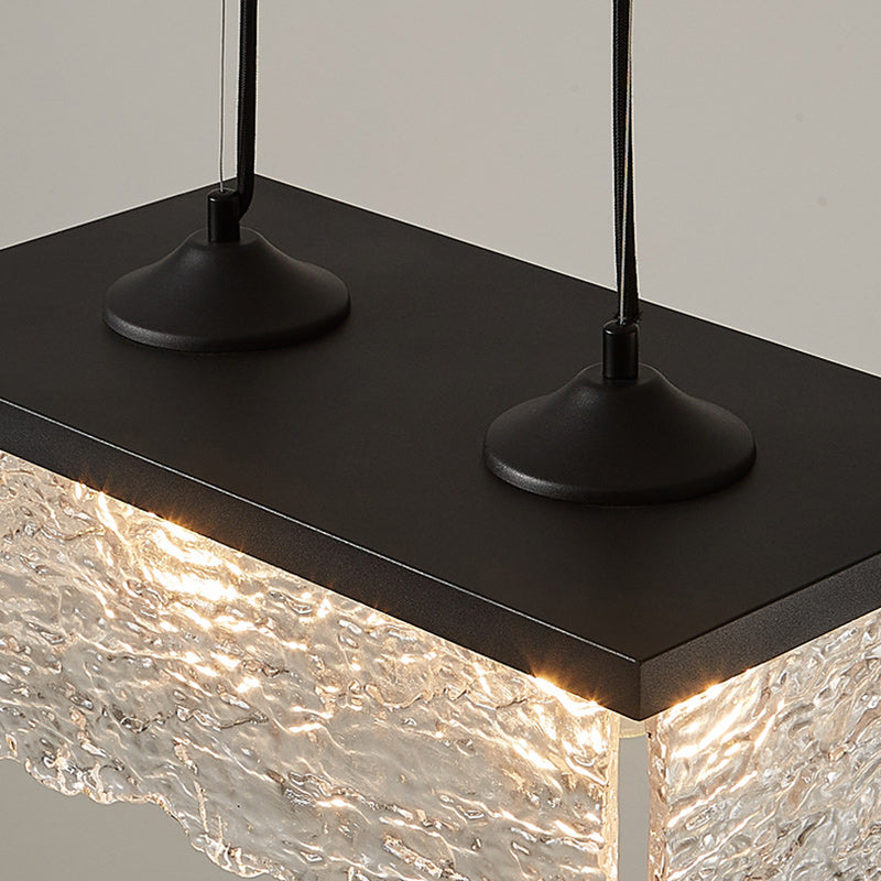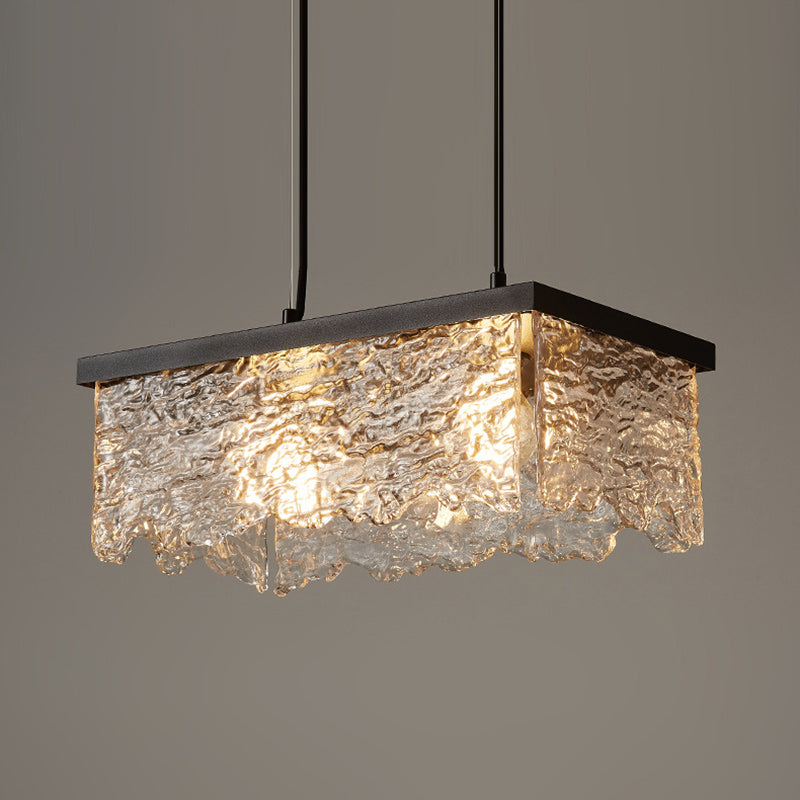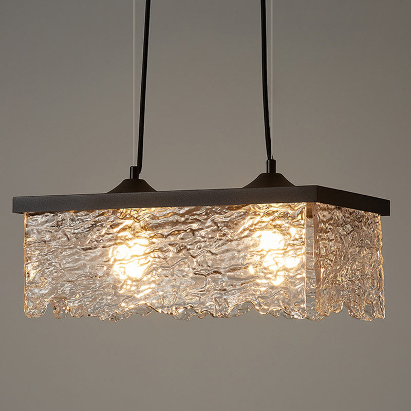 ثريا صناعية معاصرة مستطيلة الشكل مصنوعة من الحديد والزجاج بنصف ضوء لغرفة الطعام