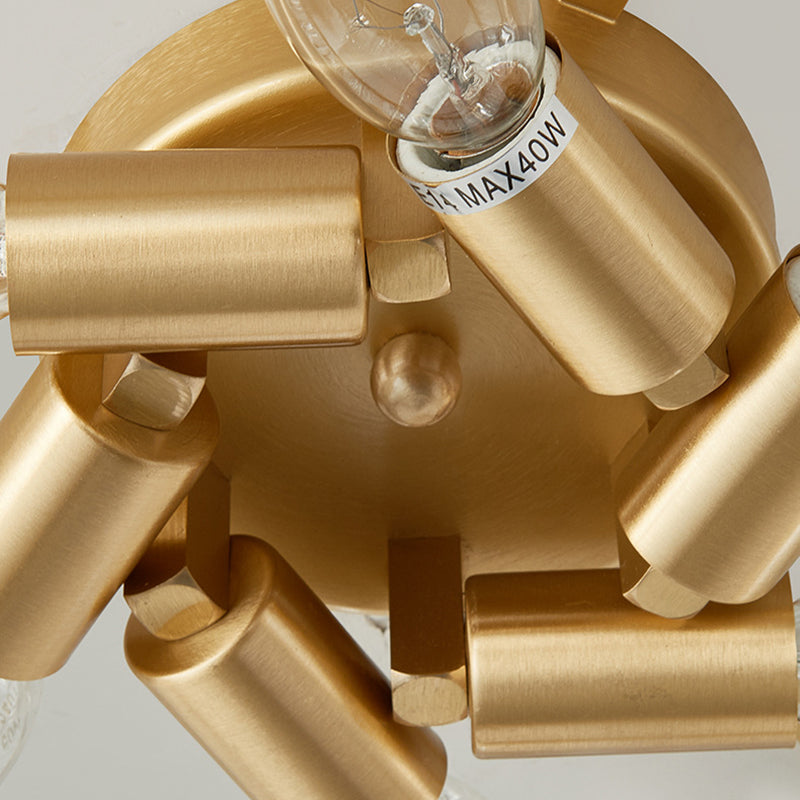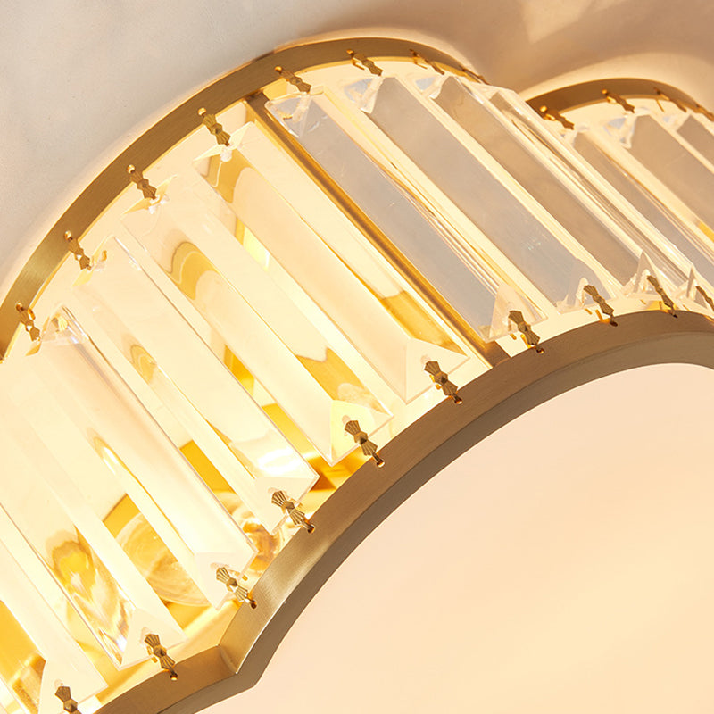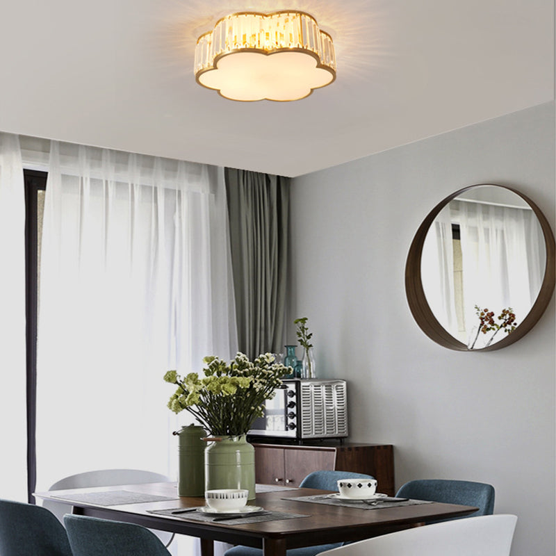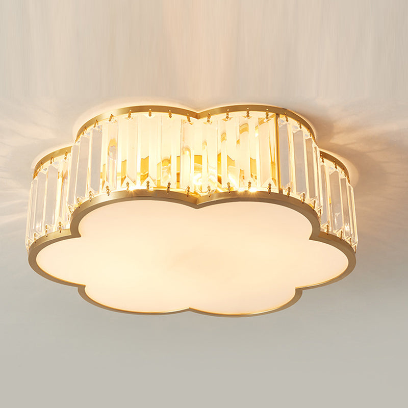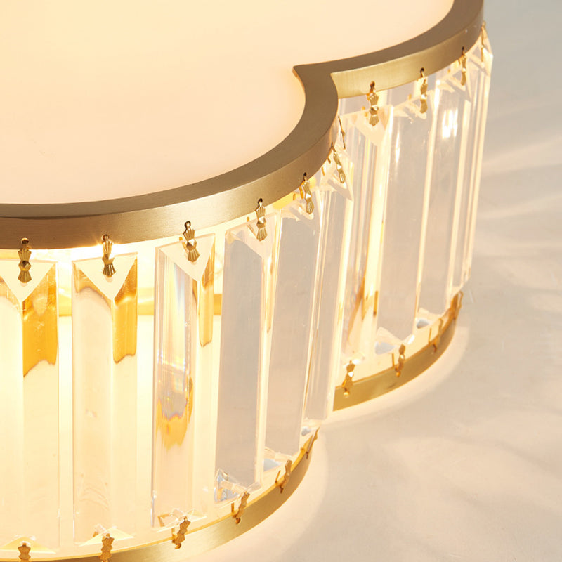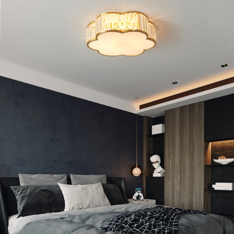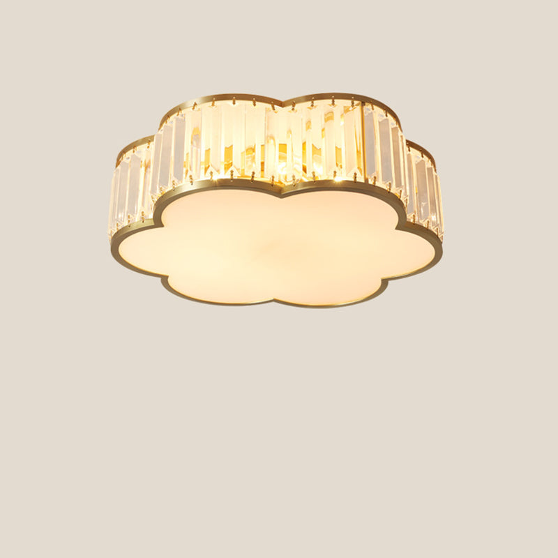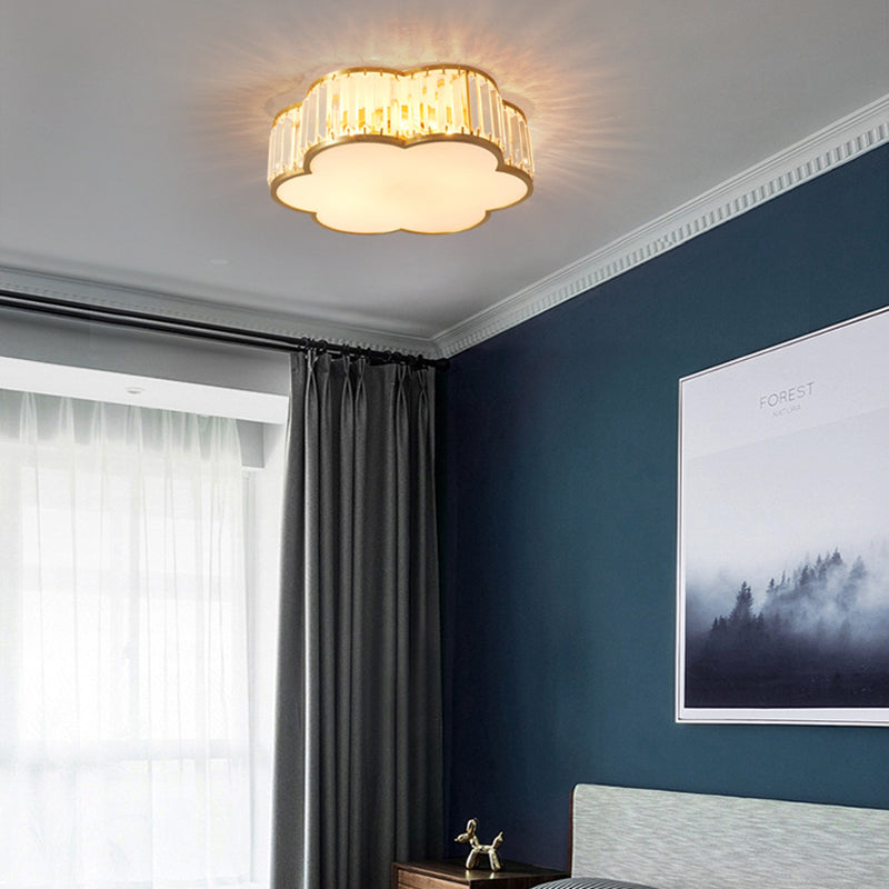 مصباح سقف فاخر معاصر بإطار نحاسي كامل مع غطاء زهرة كريستالية، 3/4 ضوء، مثبت بشكل مسطح لغرفة النوم