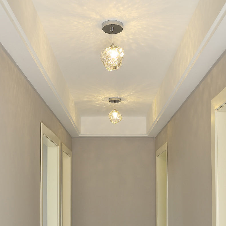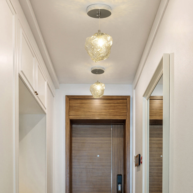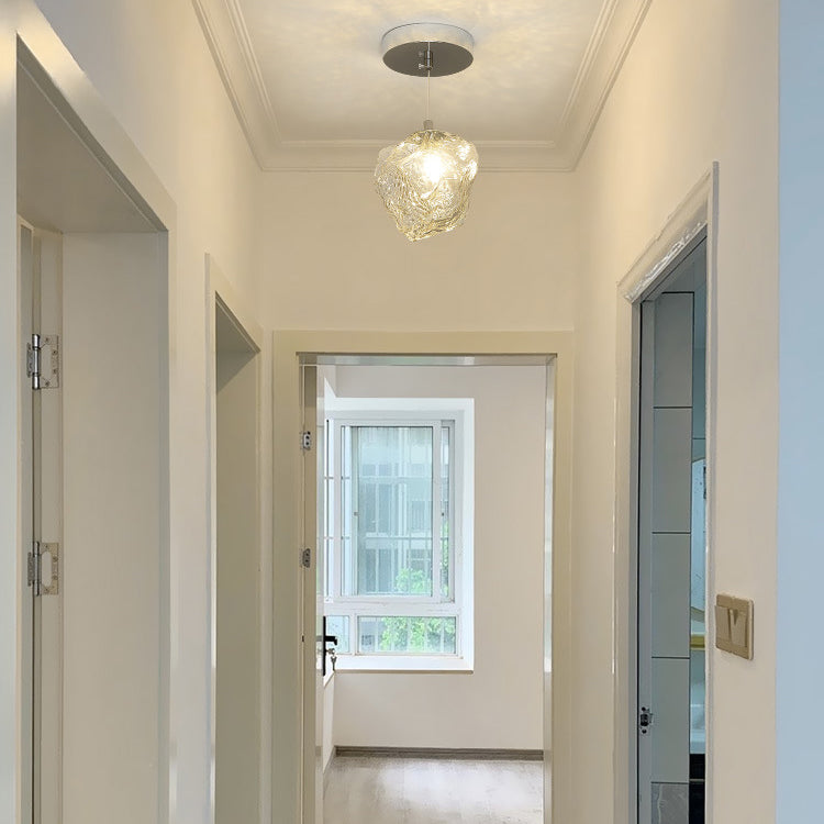 مصباح معلق معاصر فاخر بتصميم حجري تقليدي، مزود بغطاء زجاجي، مزود بمصباح واحد للممر