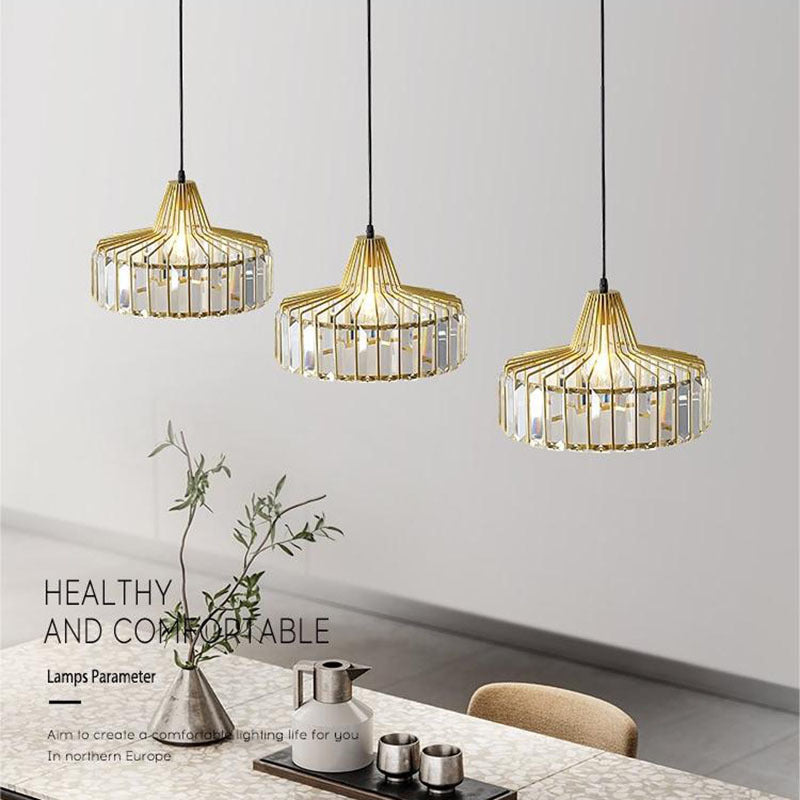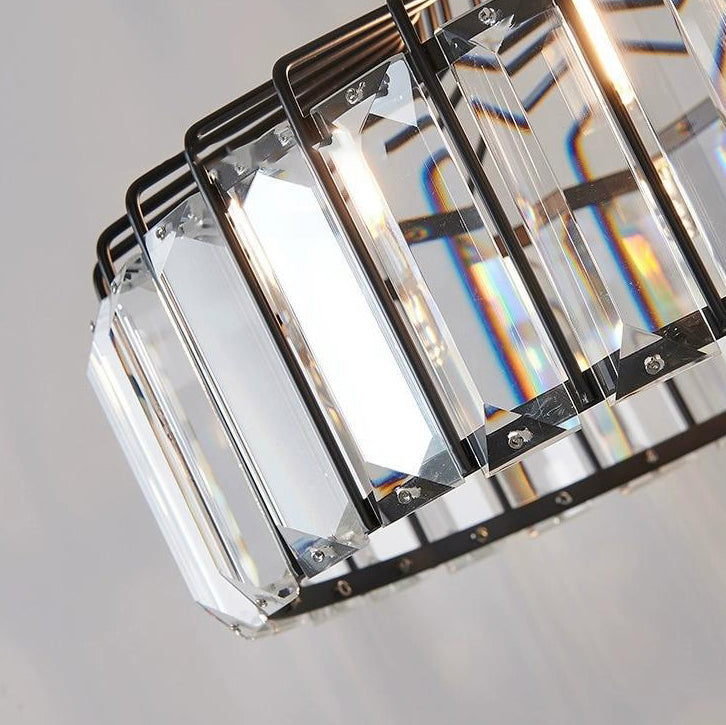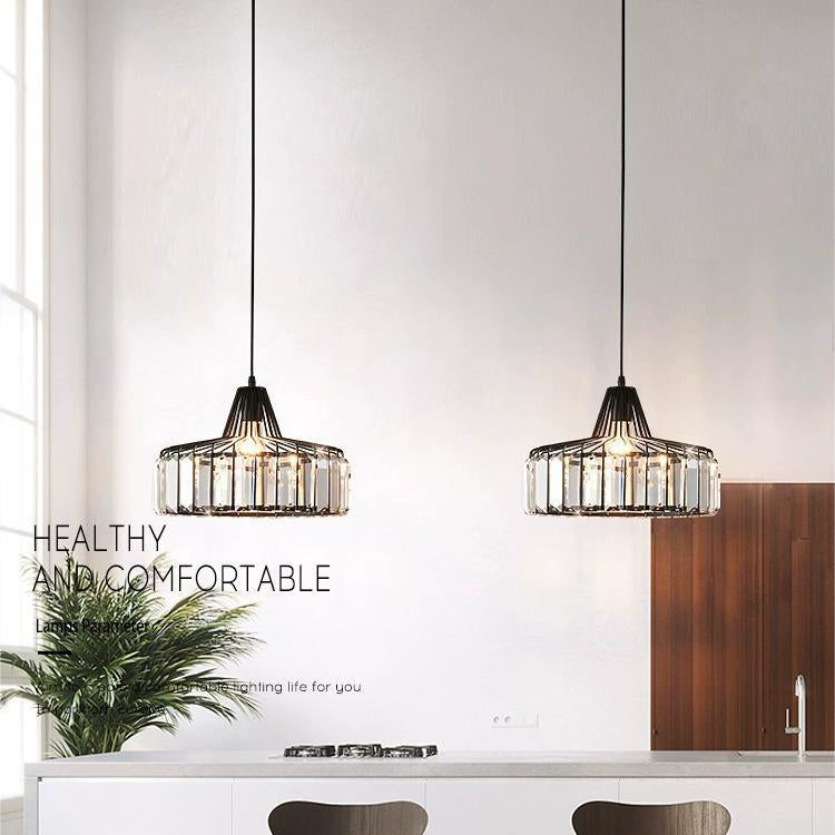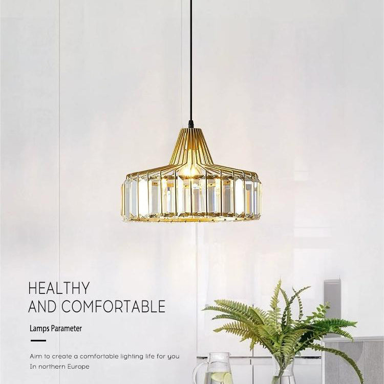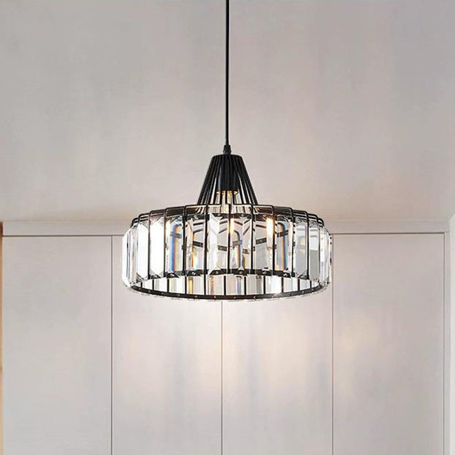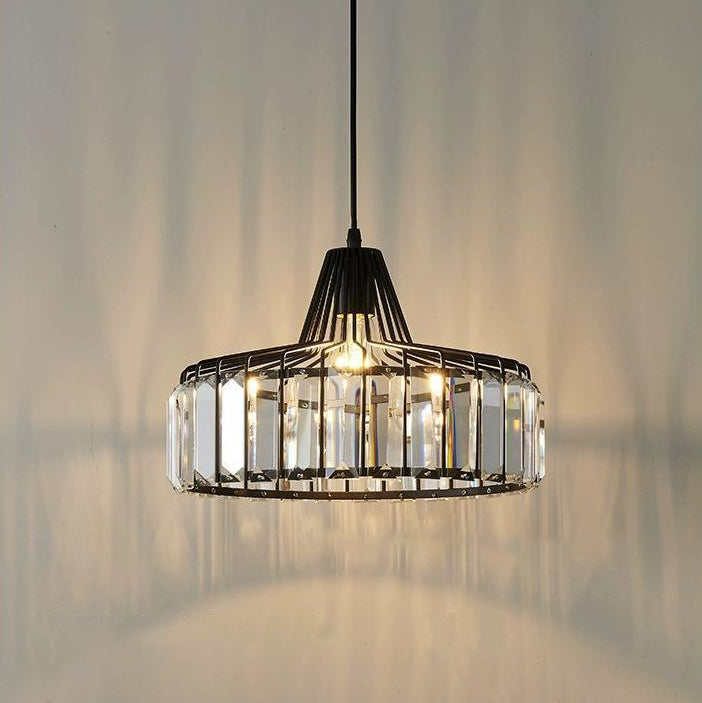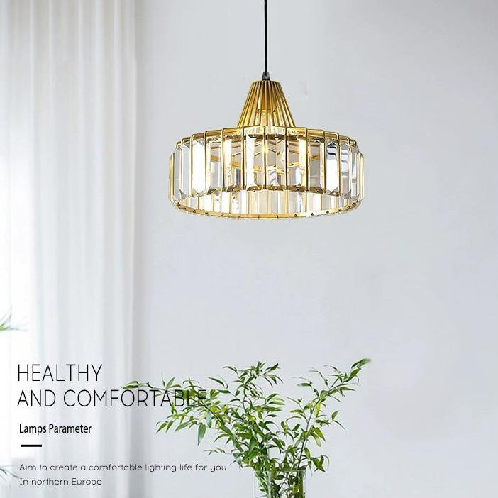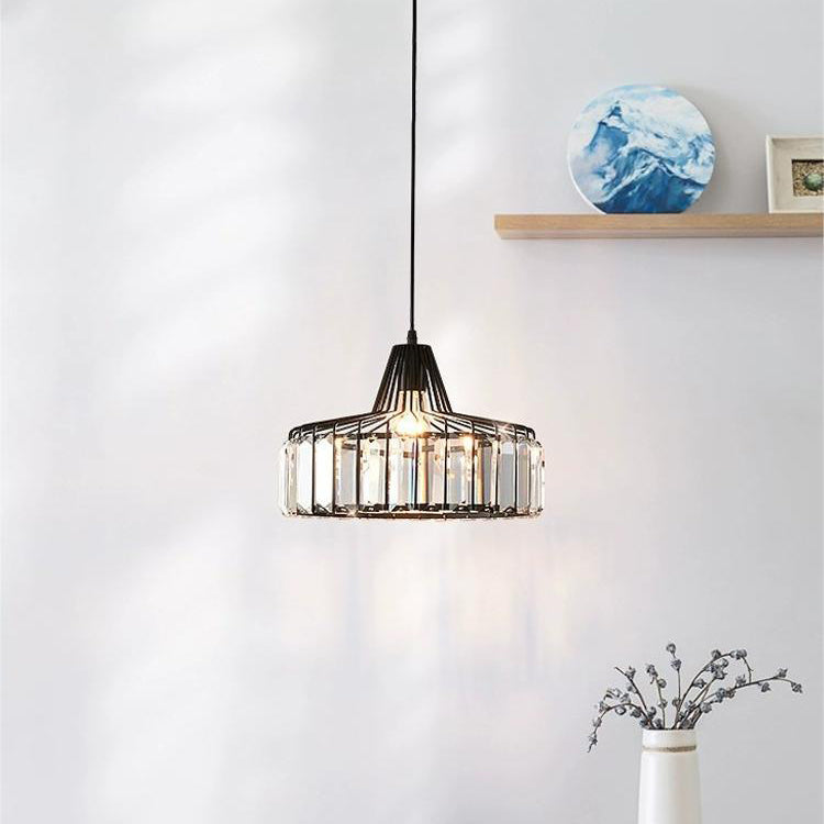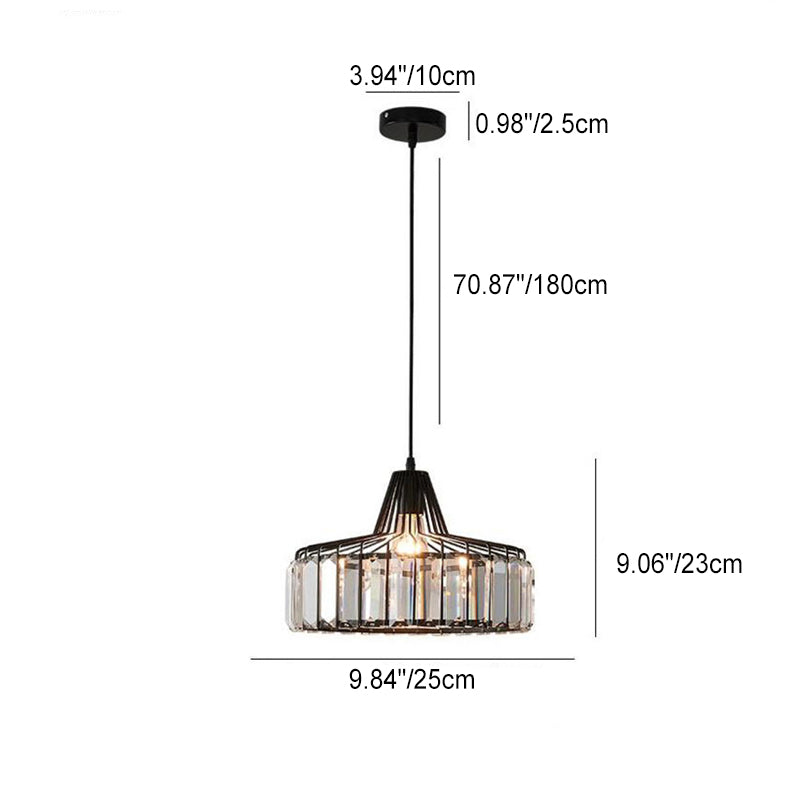 مصباح معلق معاصر فاخر بإطار أسطواني من الحديد وغطاء كريستالي ومصباح واحد لغرفة المعيشة