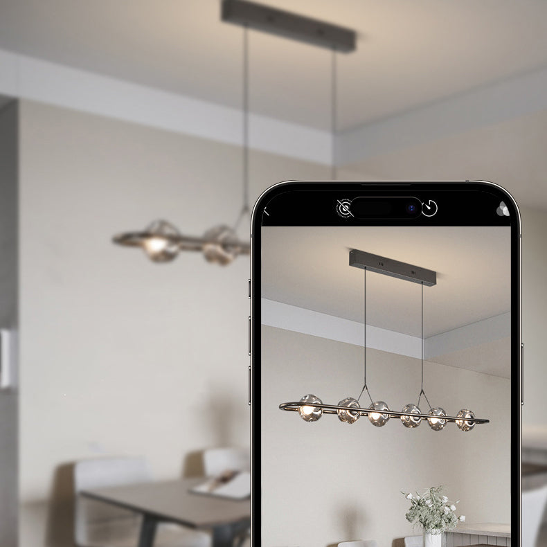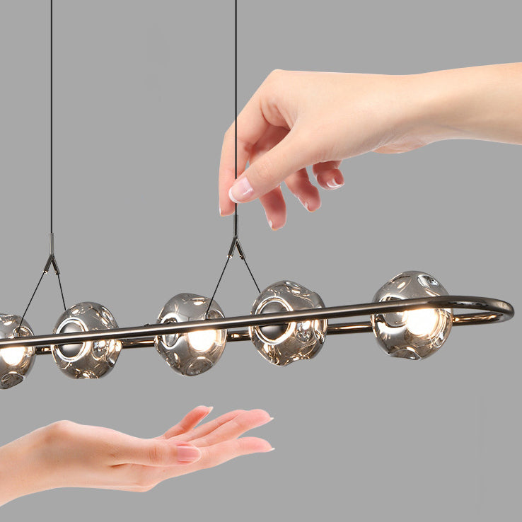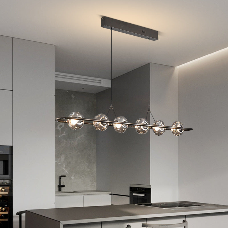 مصباح جزيرة LED فاخر معاصر مصنوع من الحديد والزجاج مع ظلة على شكل كرة لغرفة المعيشة