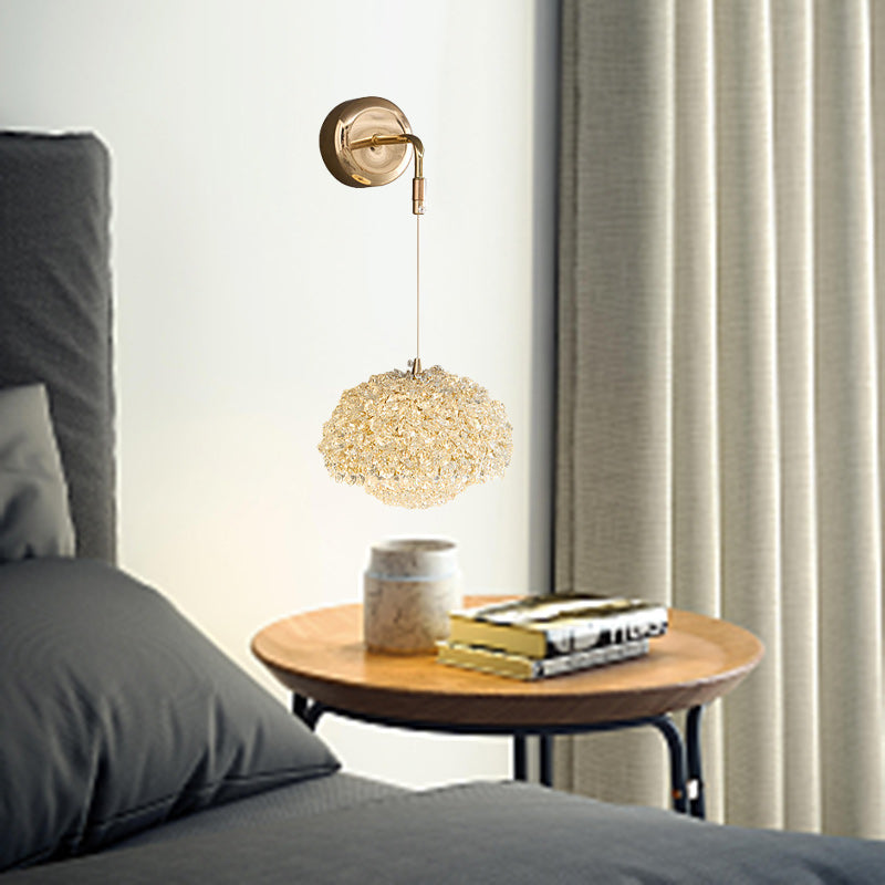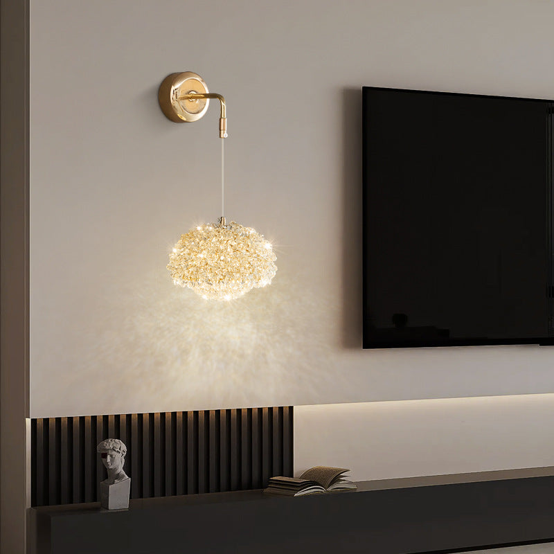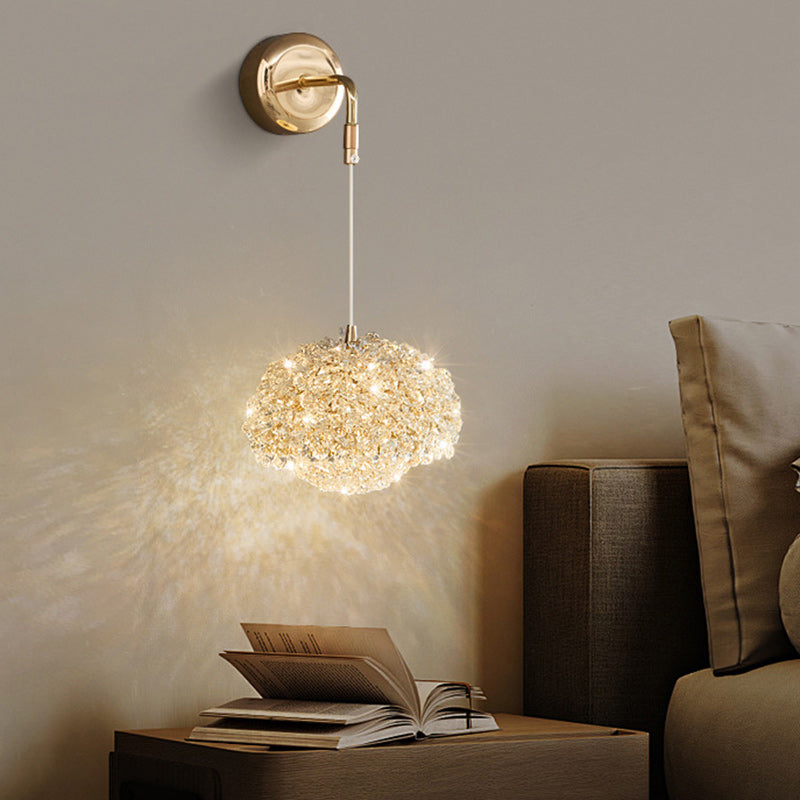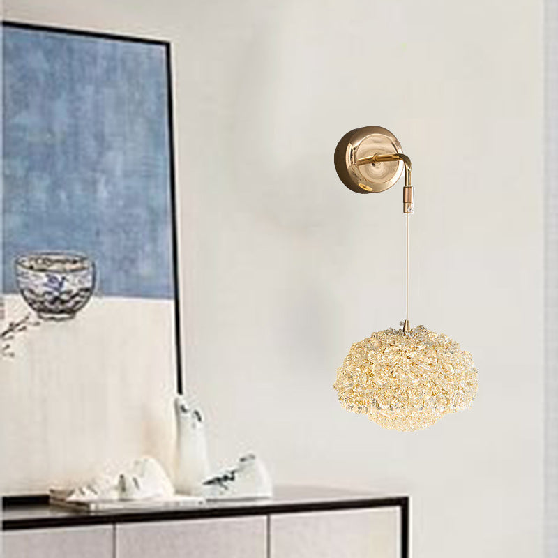 مصباح حائطي معاصر فاخر من الألومنيوم البيضاوي الكريستالي مزود بمصباح واحد لغرفة المعيشة