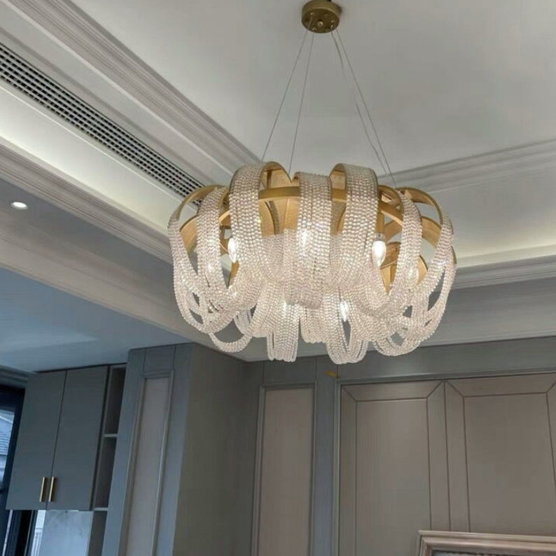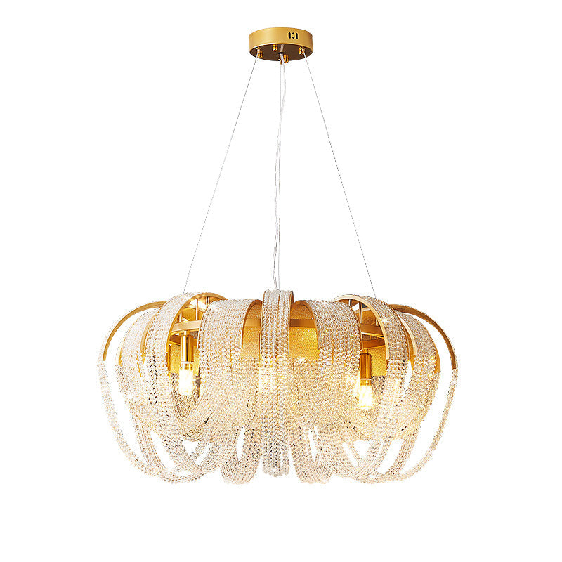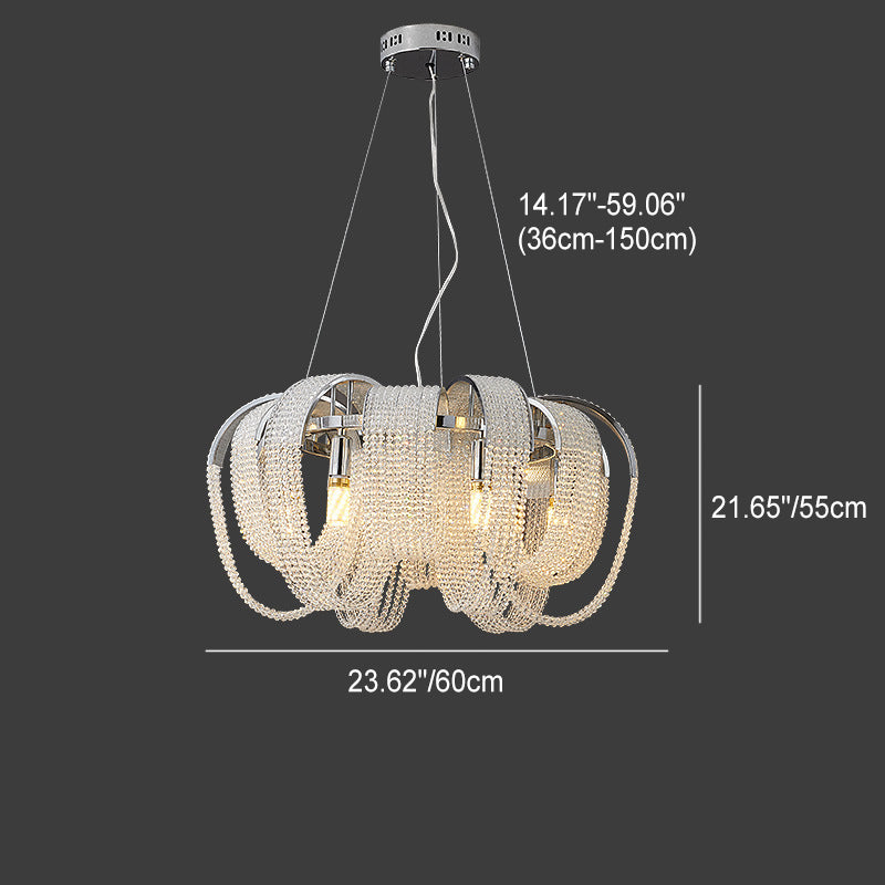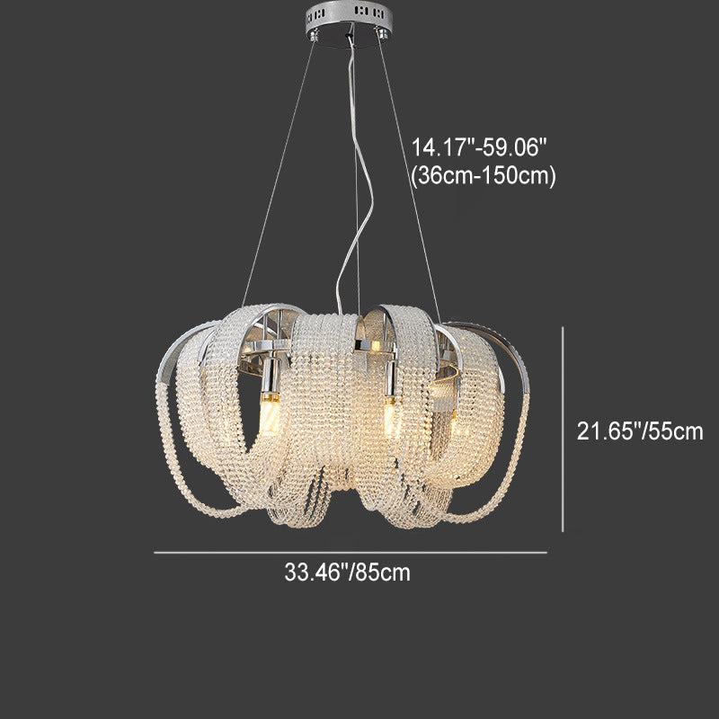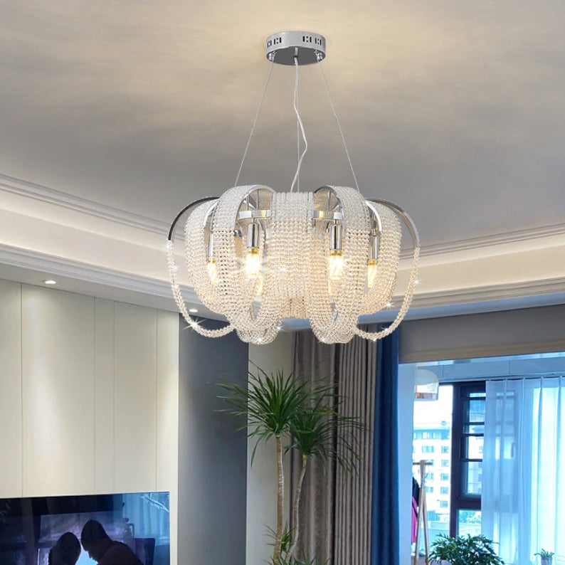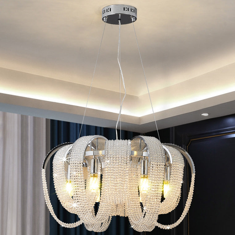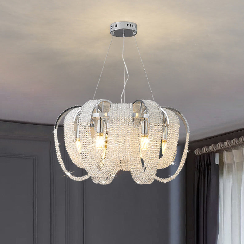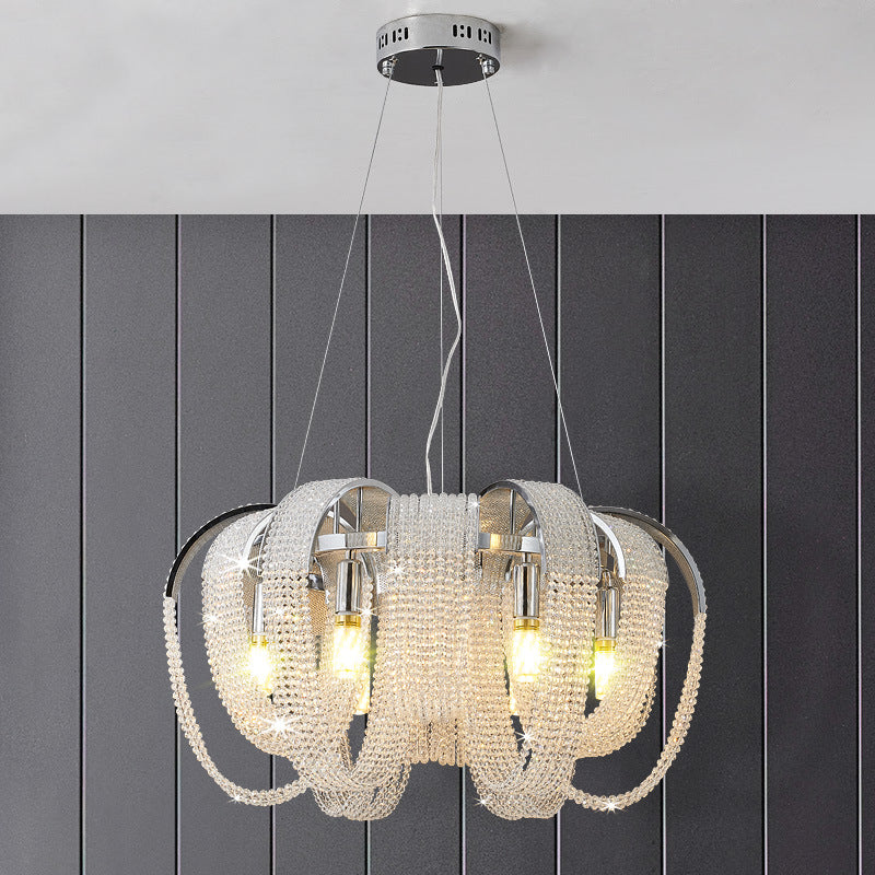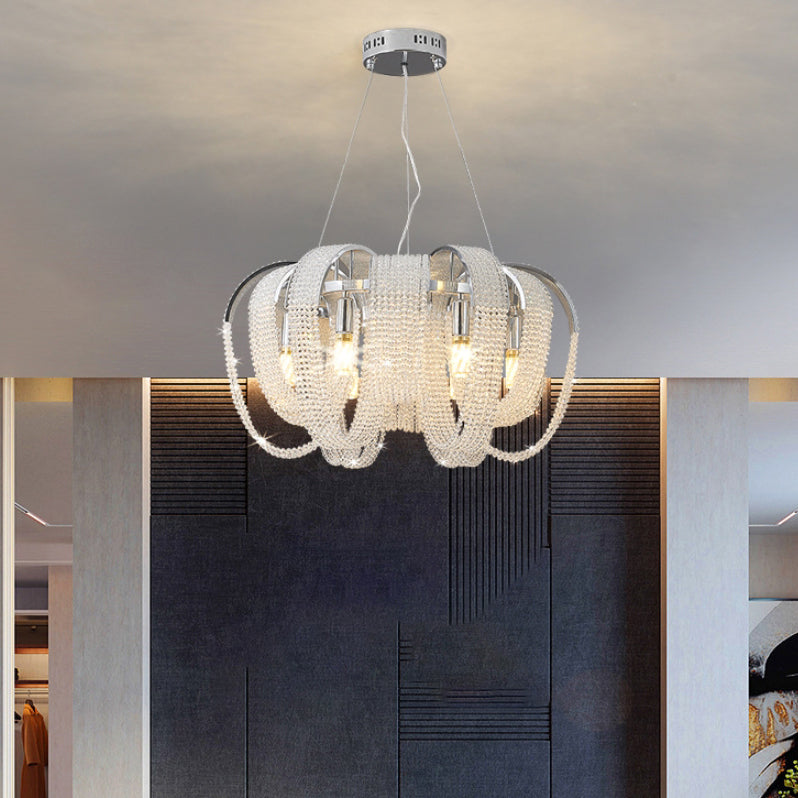 ثريات معاصرة فاخرة من الفولاذ المقاوم للصدأ ذات هامش دائري من الكريستال، 6/8 ضوء لغرفة المعيشة