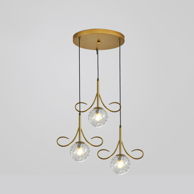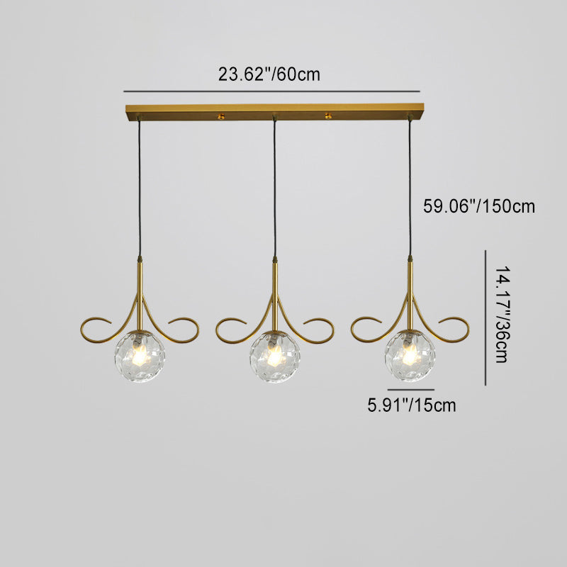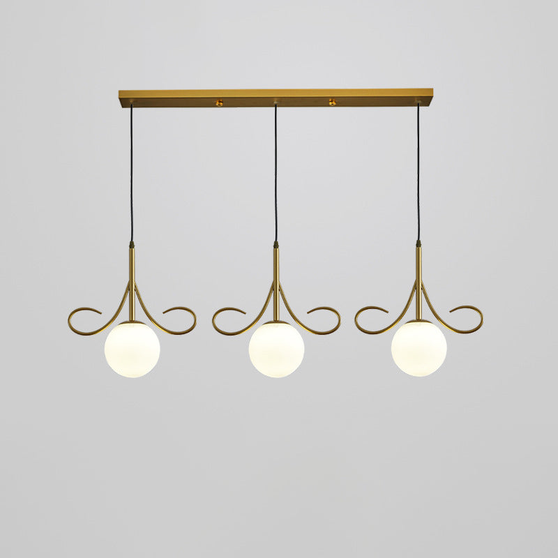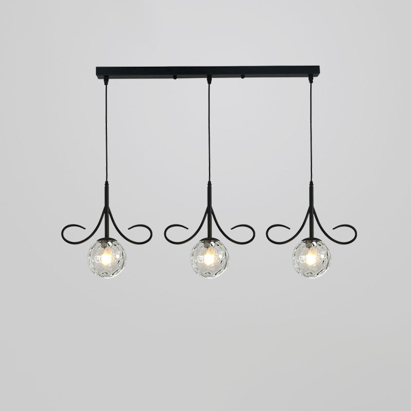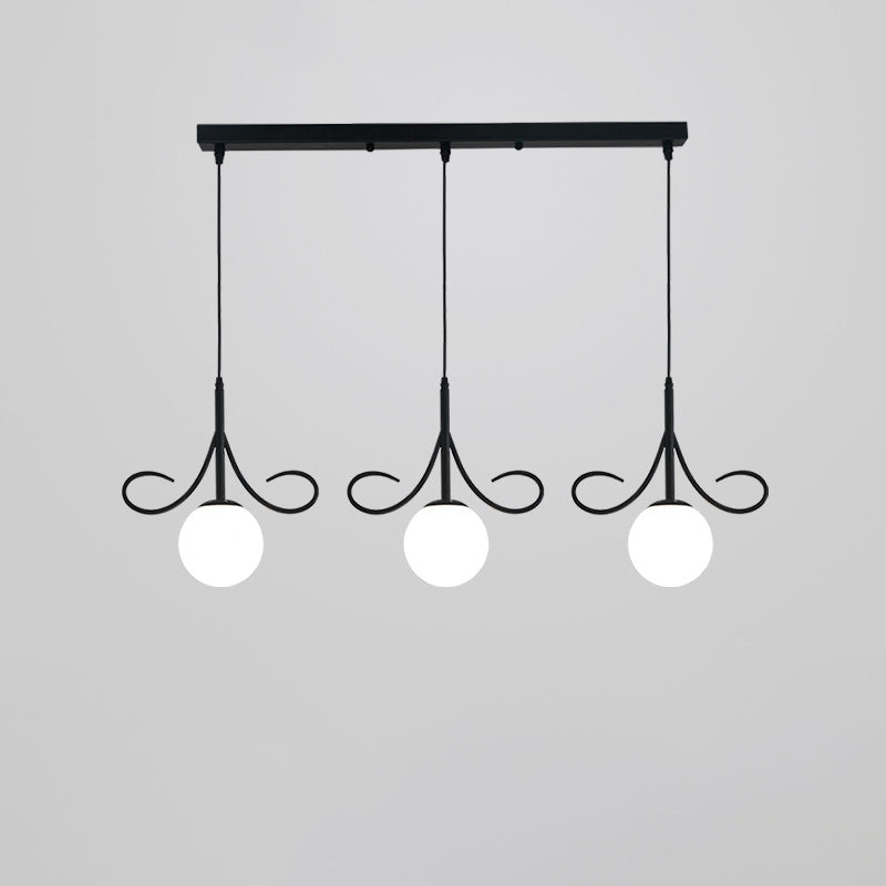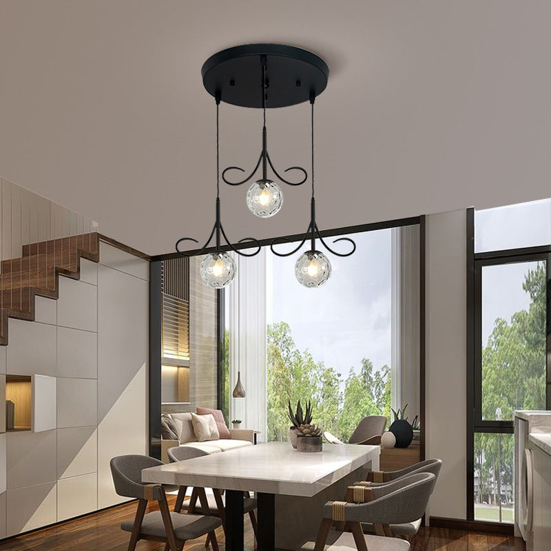 ثريات جزيرة معاصرة من الحديد والزجاج بثلاثة مصابيح لغرفة الطعام