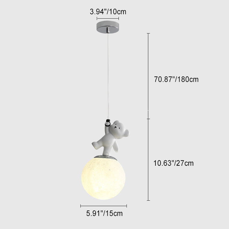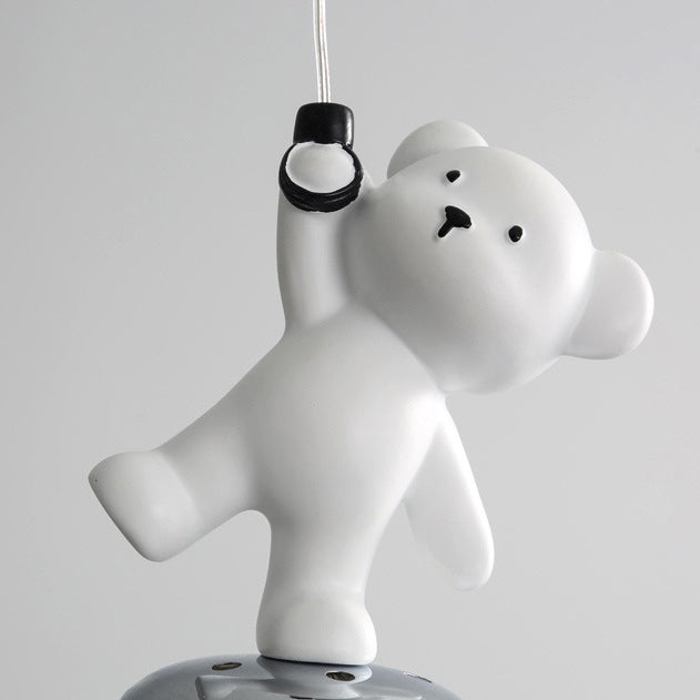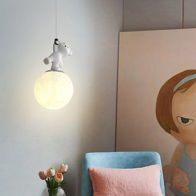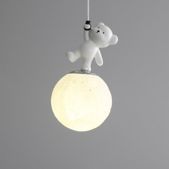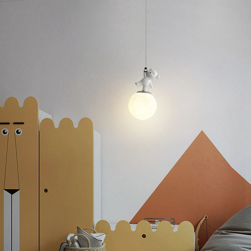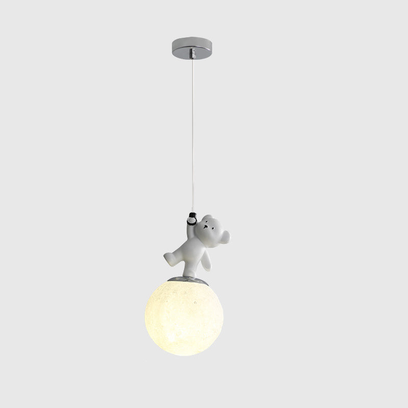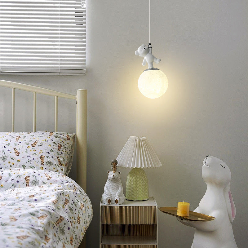 مصباح معلق عصري على شكل دب نورديك على شكل كرة مستديرة من الراتنج والزجاج والحديد، 1 مصباح معلق بجانب السرير