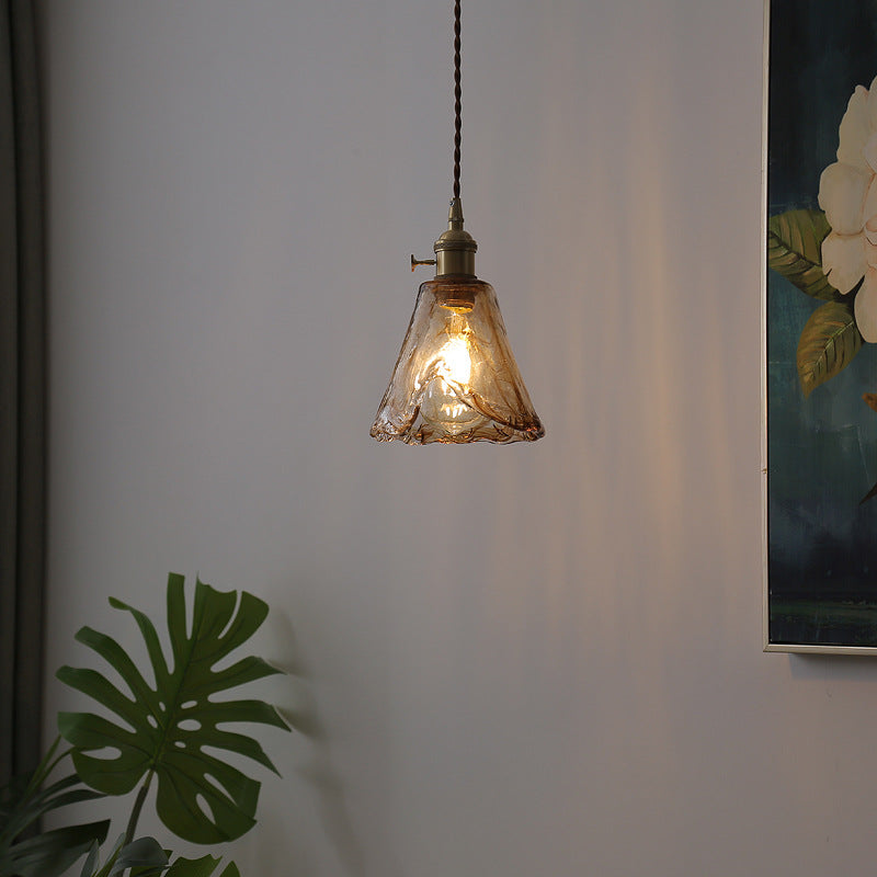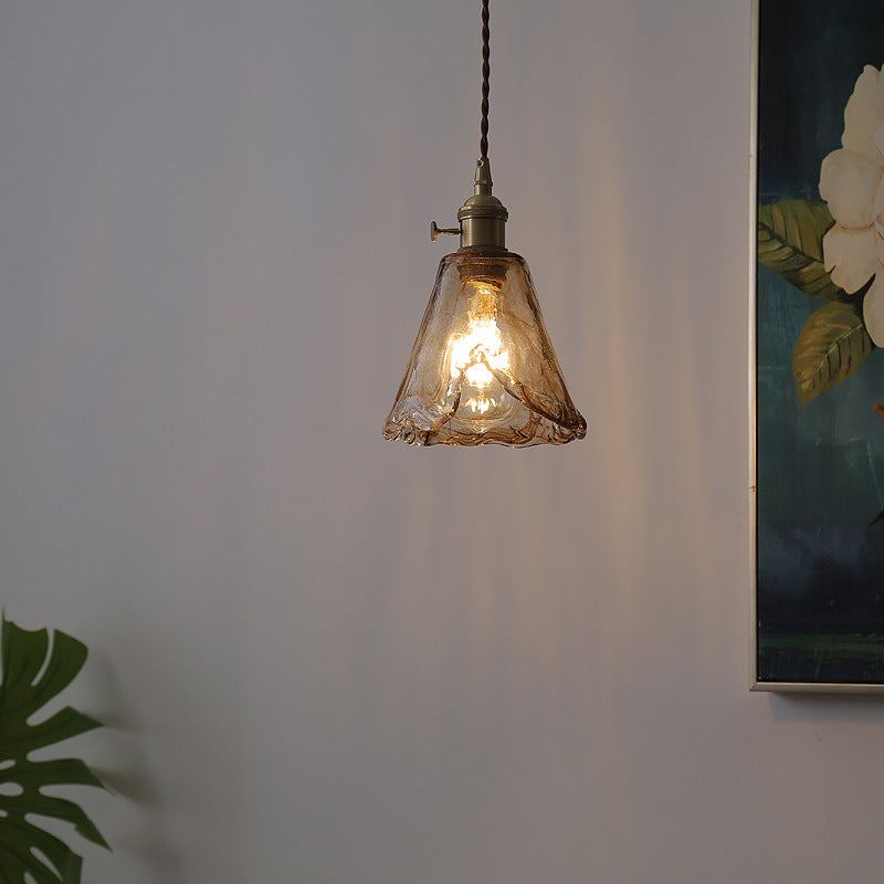 مصباح معلق معاصر من النحاس والزجاج بتصميم مخروطي نورديك لغرفة المعيشة