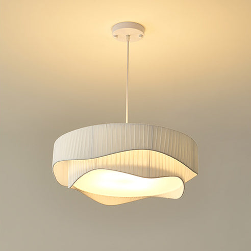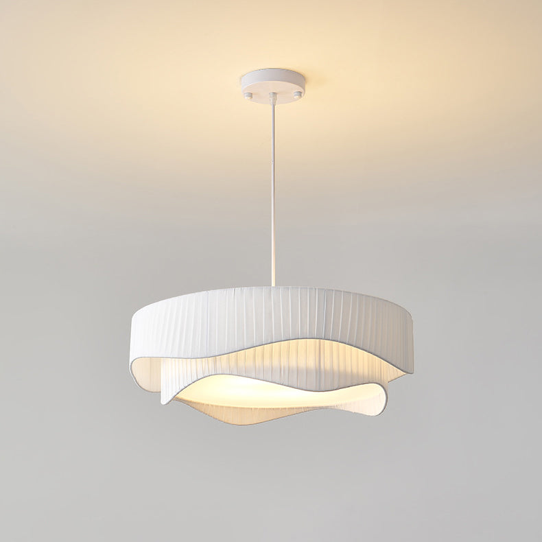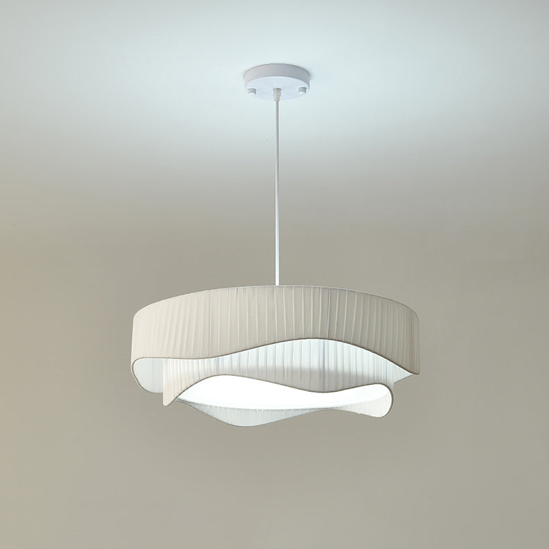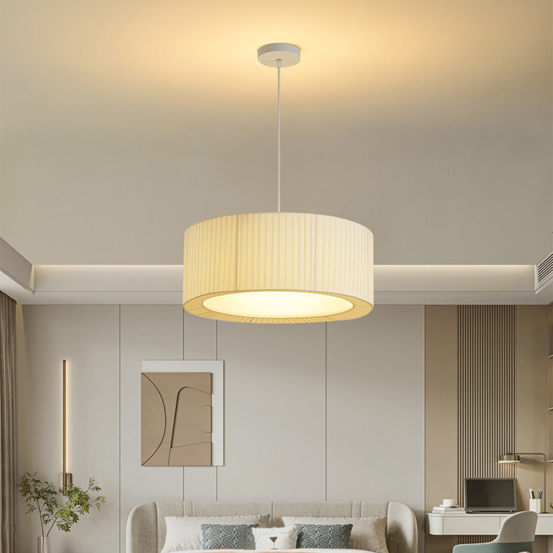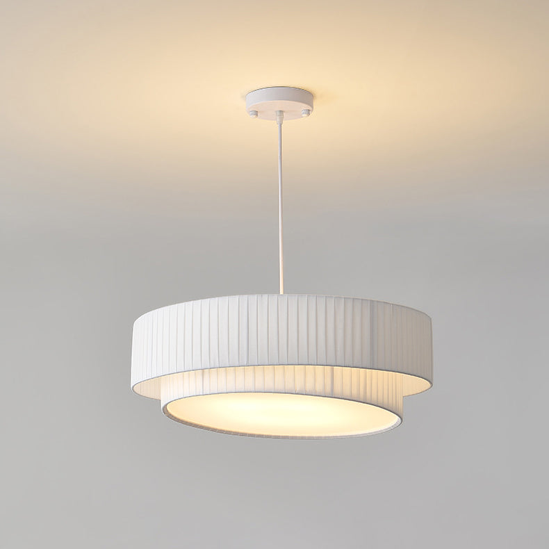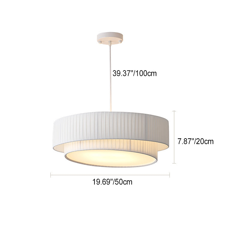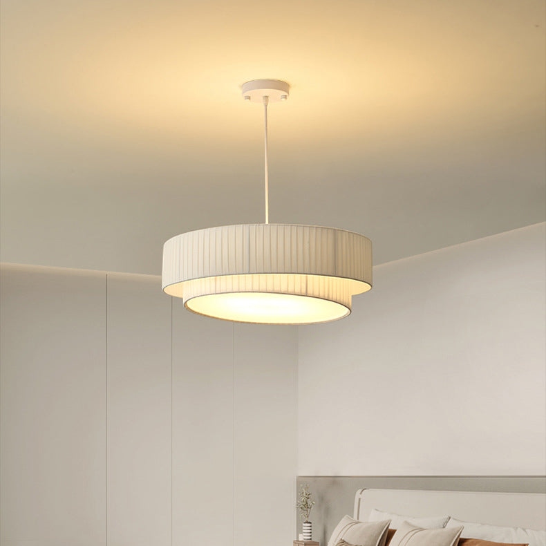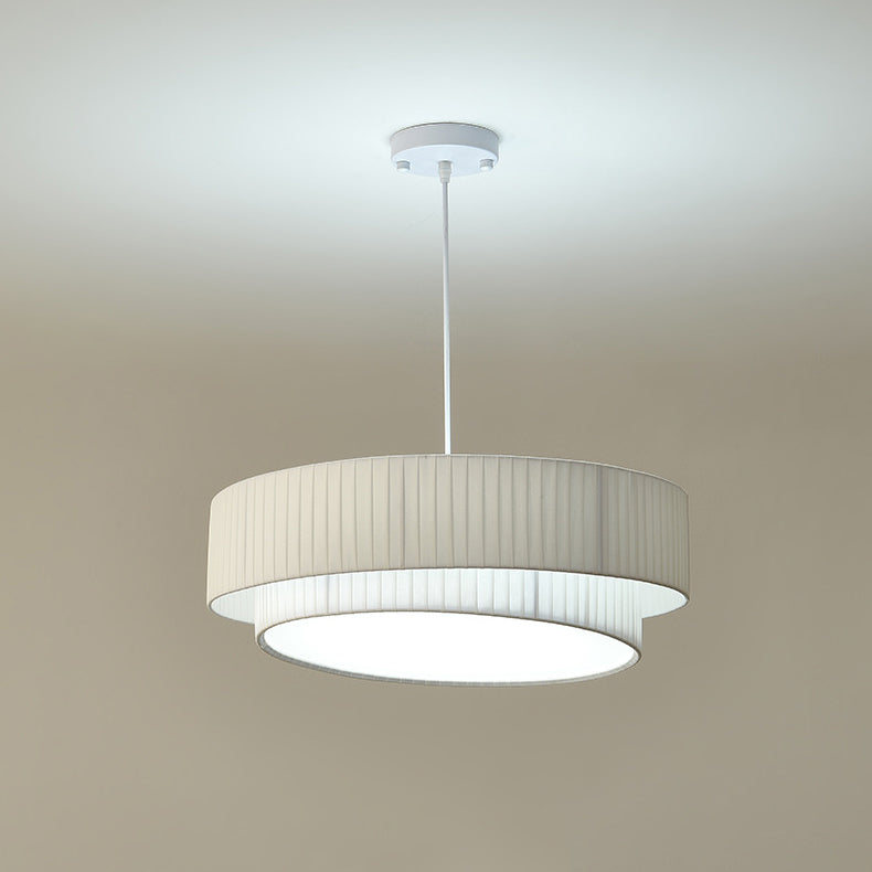 مصباح معلق عصري من الحديد والأكريليك بطبقتين من القماش المطوي على شكل أسطوانة، مكون من 4/5 مصابيح لغرفة المعيشة