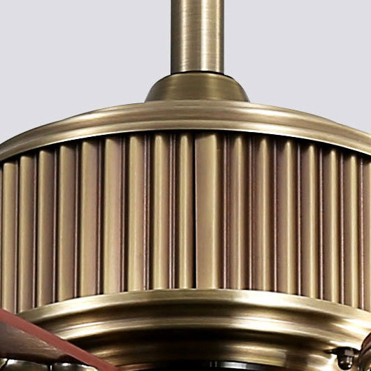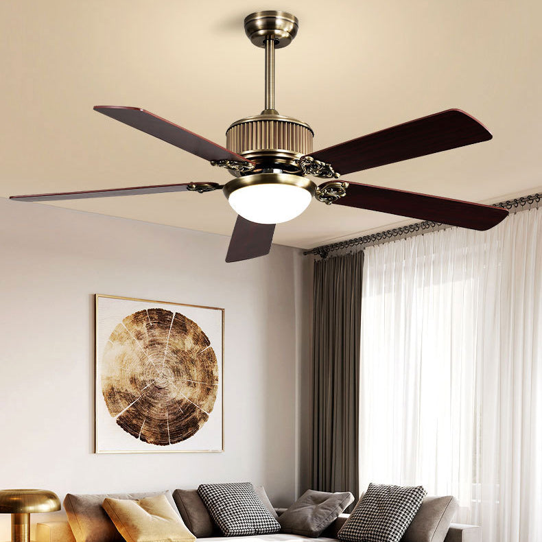 مروحة سقف معاصرة من خمس شفرات مصنوعة من النحاس والخشب والزجاج مزودة بمصابيح LED لغرفة المعيشة