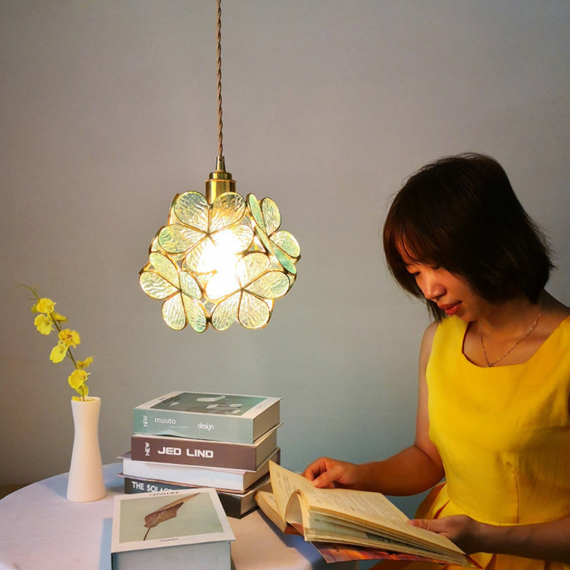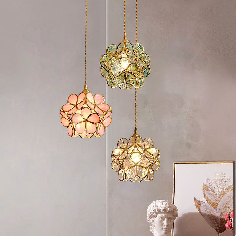 مصباح معلق معاصر من النحاس والزجاج بتصميم أزهار نورديك لغرفة المعيشة