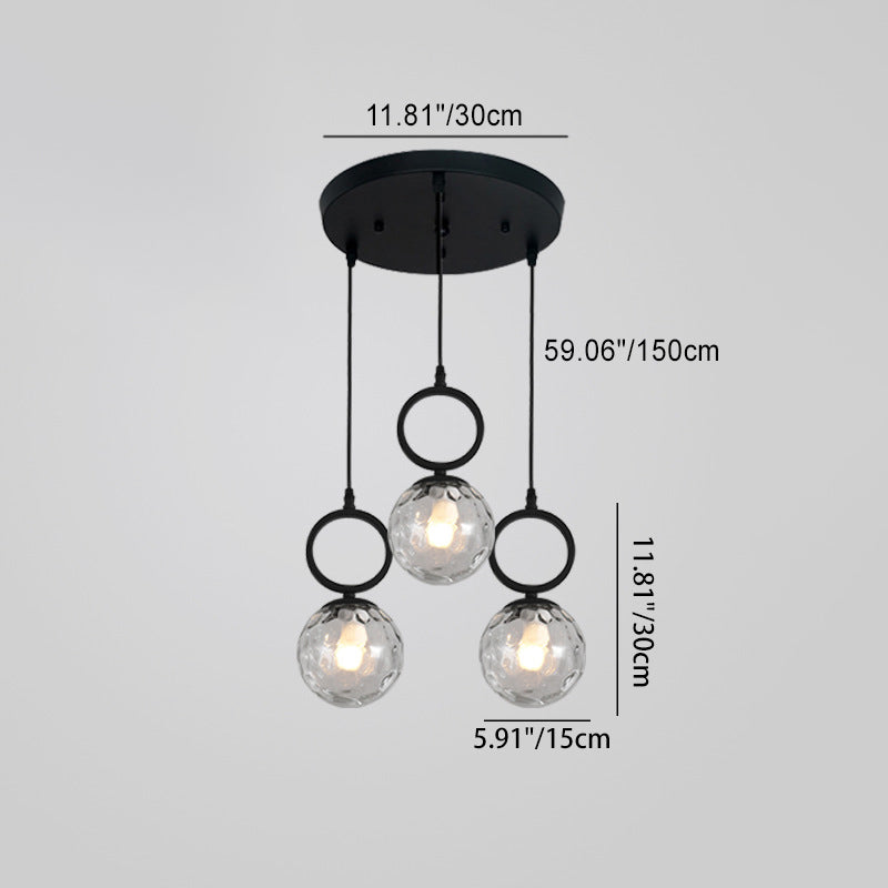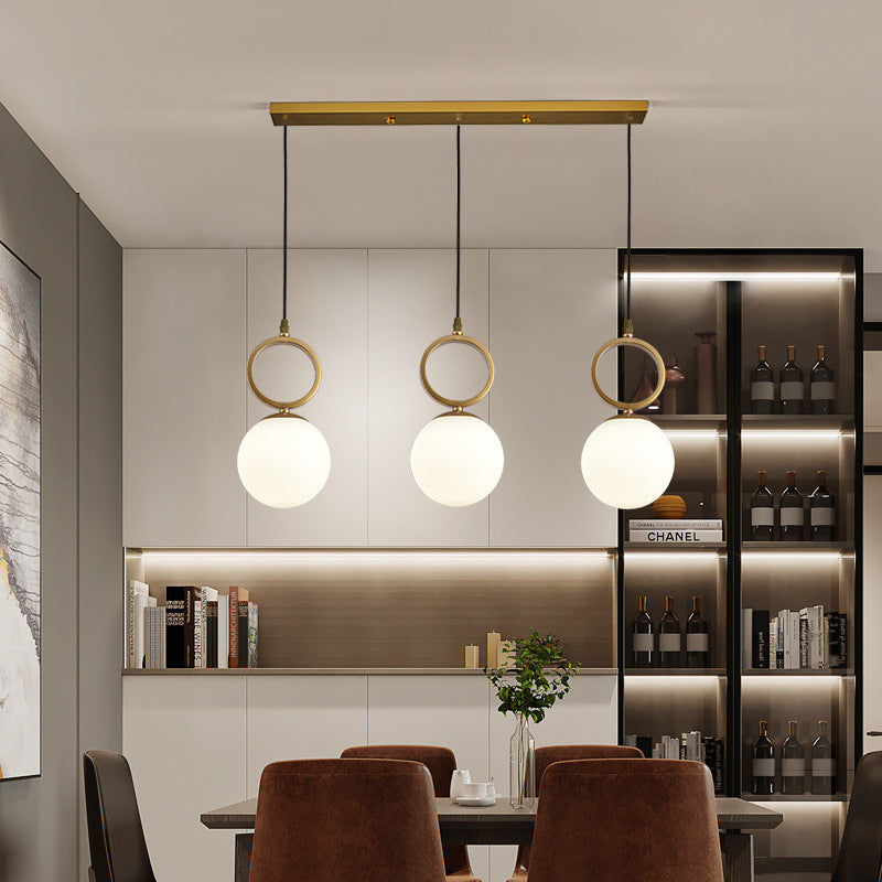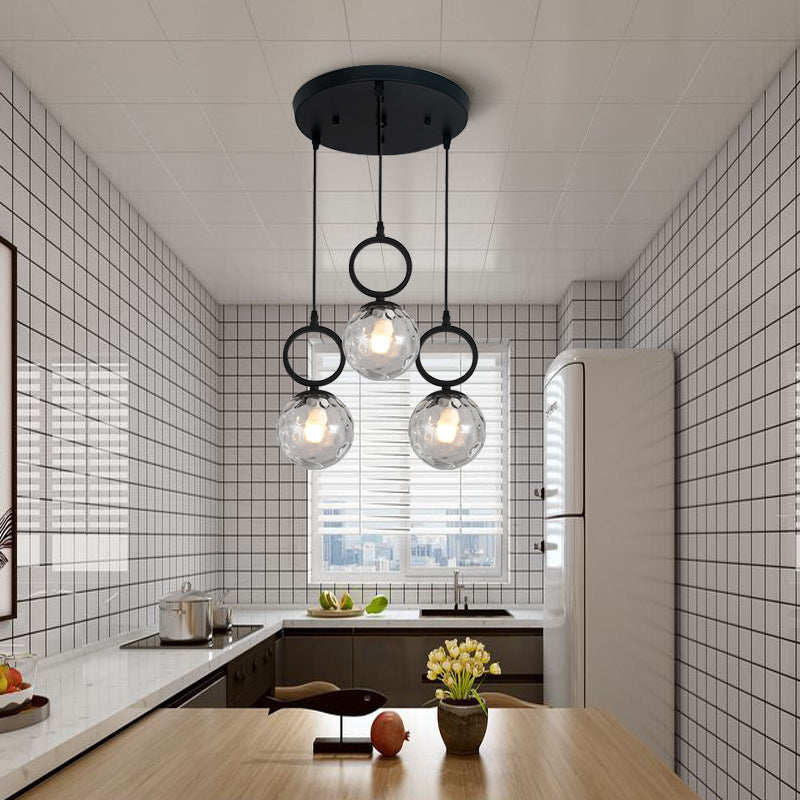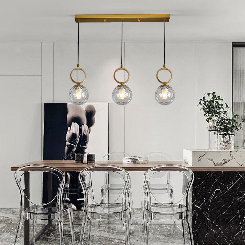 ثريات جزيرة عصرية من الزجاج والحديد بتصميم نورديك، مزودة بثلاث مصابيح، لغرفة الطعام