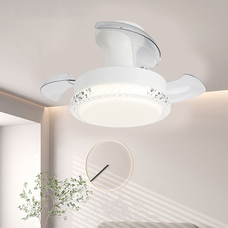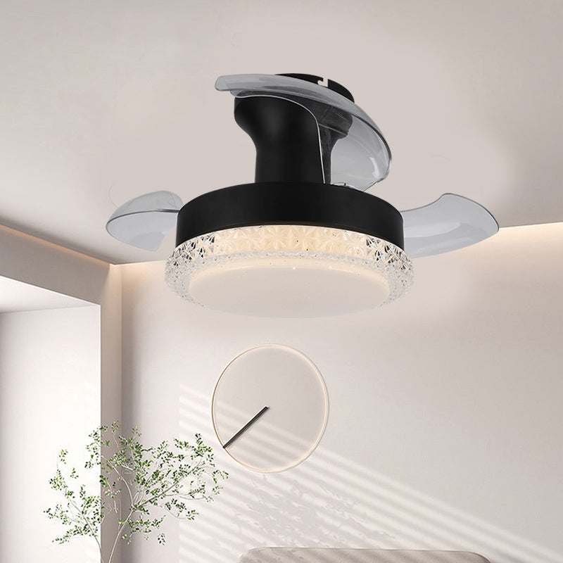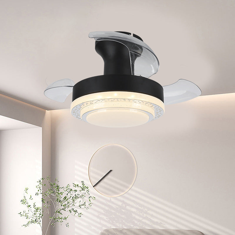 مروحة سقف معاصرة من الحديد الإسكندنافي مصنوعة من مادة ABS دائرية الشكل مزودة بإضاءة LED شبه مسطحة لغرفة المعيشة