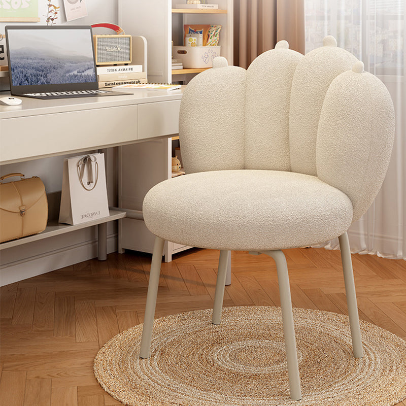 This cozy vanity stool blends Nordic charm with ergonomic comfort, featuring a cat-paw shaped backrest, soft lambswool fabric, and a round seat. Supported by a sturdy carbon steel base, it's available in white, gray, blue, green, and yellow—ideal for any modern bedroom or living room.