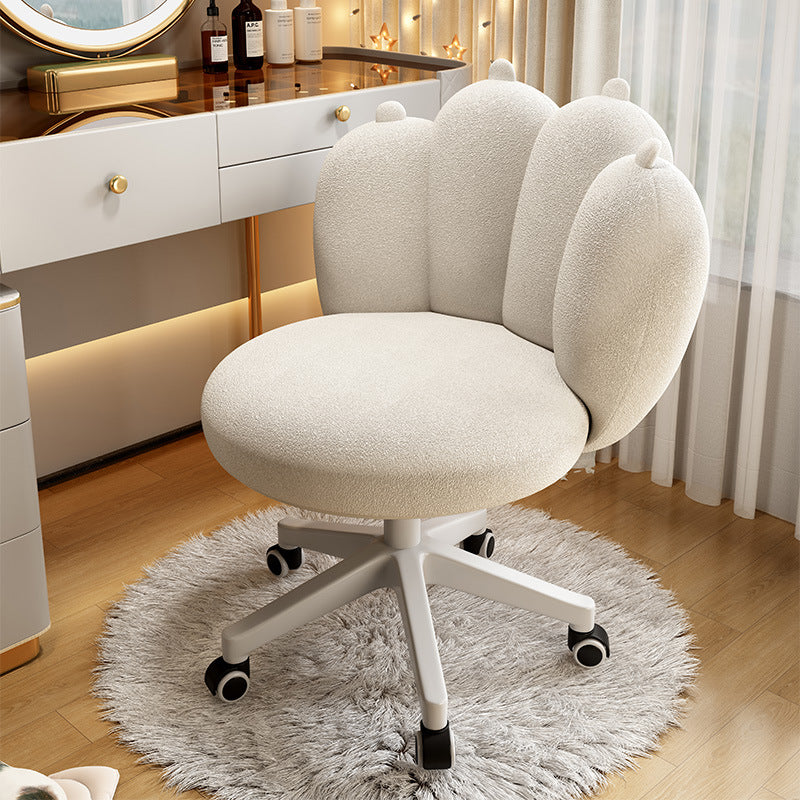 Contemporary Nordic Lambswool & Carbon Steel Cat-Paw Back Round Seat Vanity Stool With Swivel & Adjustable Height For Bedroom & Living Room