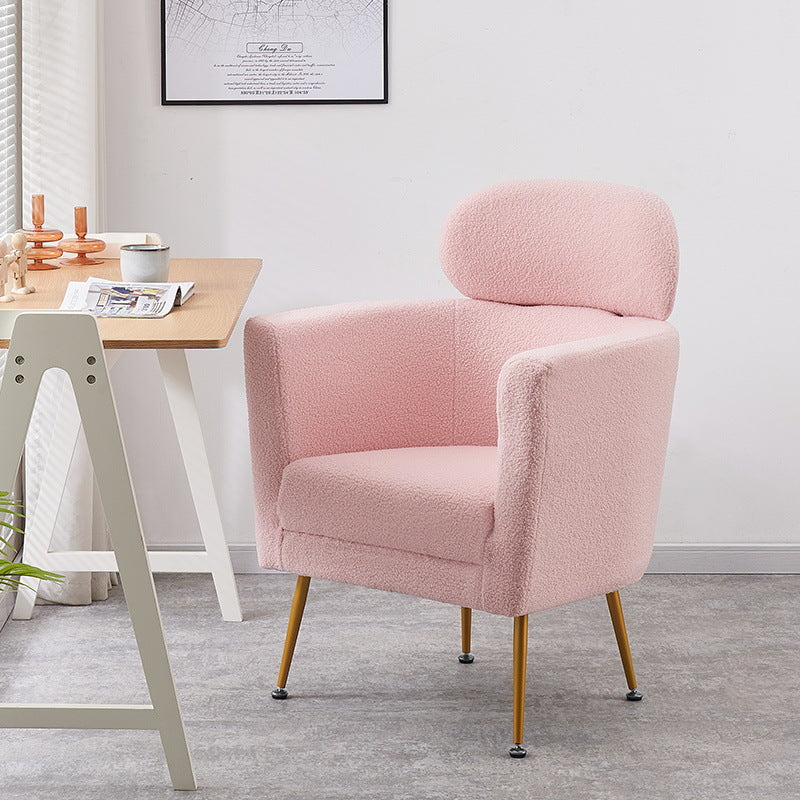 Elevate your space with this contemporary Nordic lambswool single sofa chair, designed with a cozy curved back and ergonomic support. Available in white, pink, gray, and brown, it's perfect for bedrooms, living rooms, vanities, or reception areas.