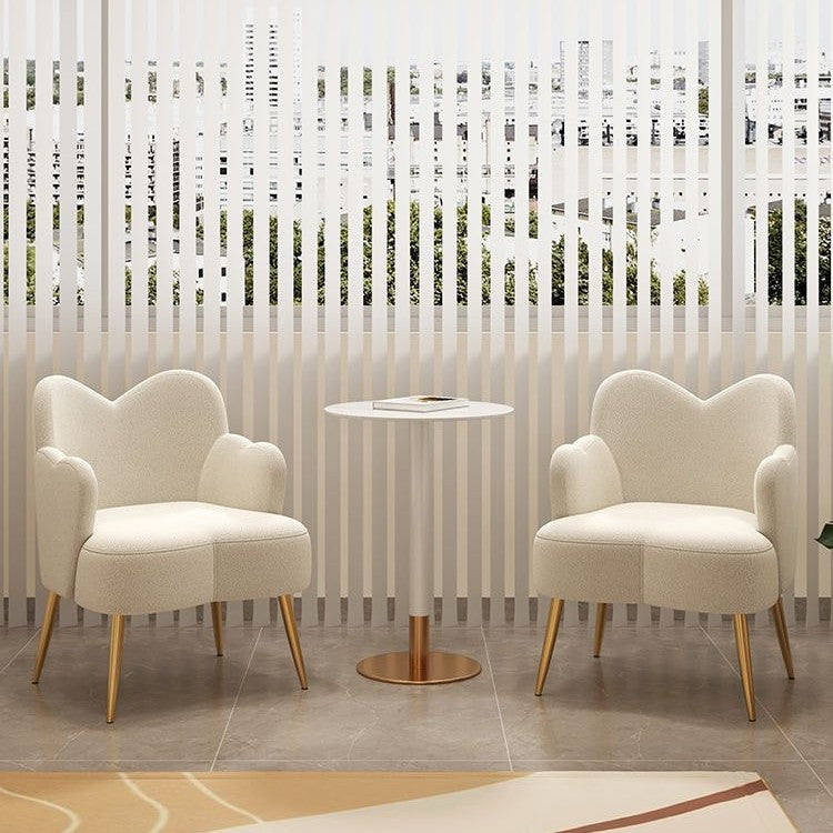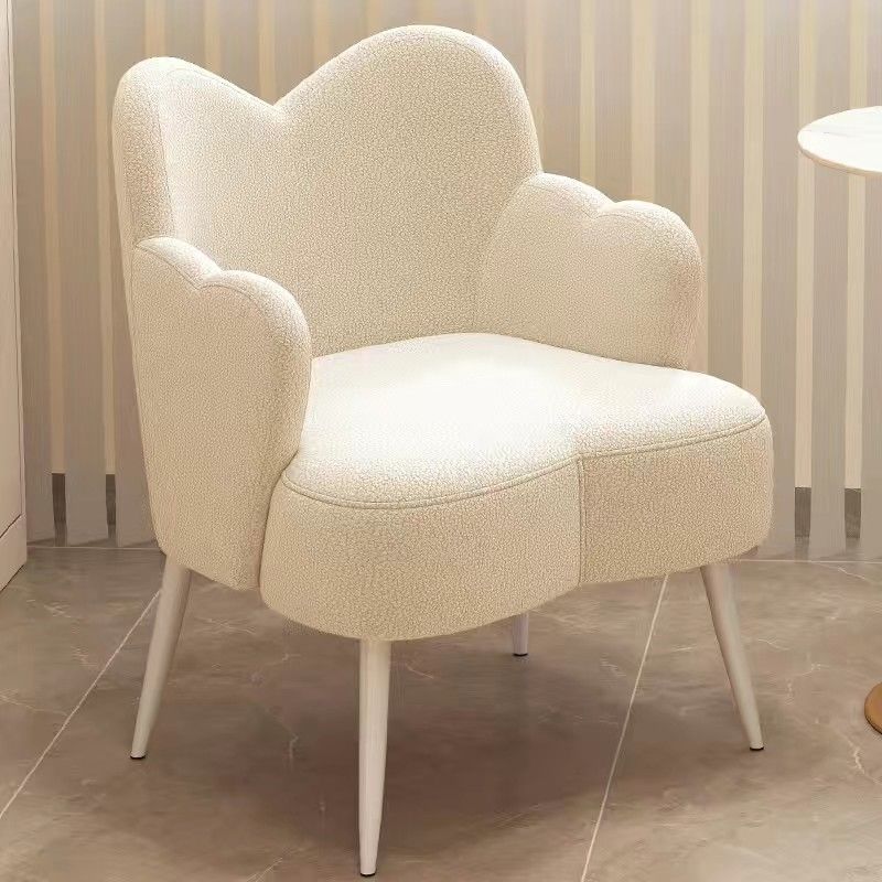 Contemporary Nordic Lambswool & Metal Curved Back Vanity Stool For Bedroom