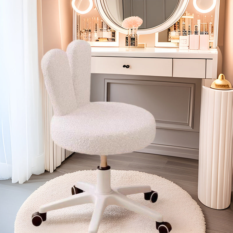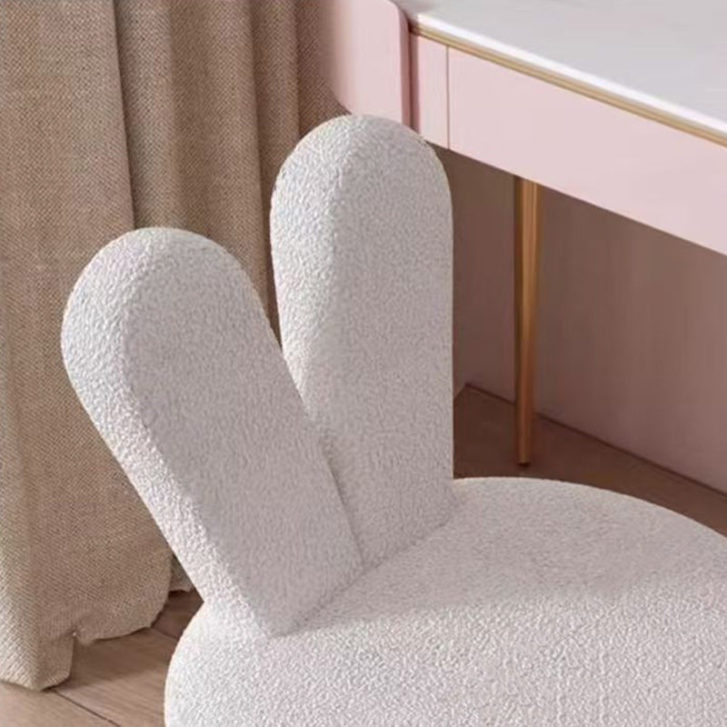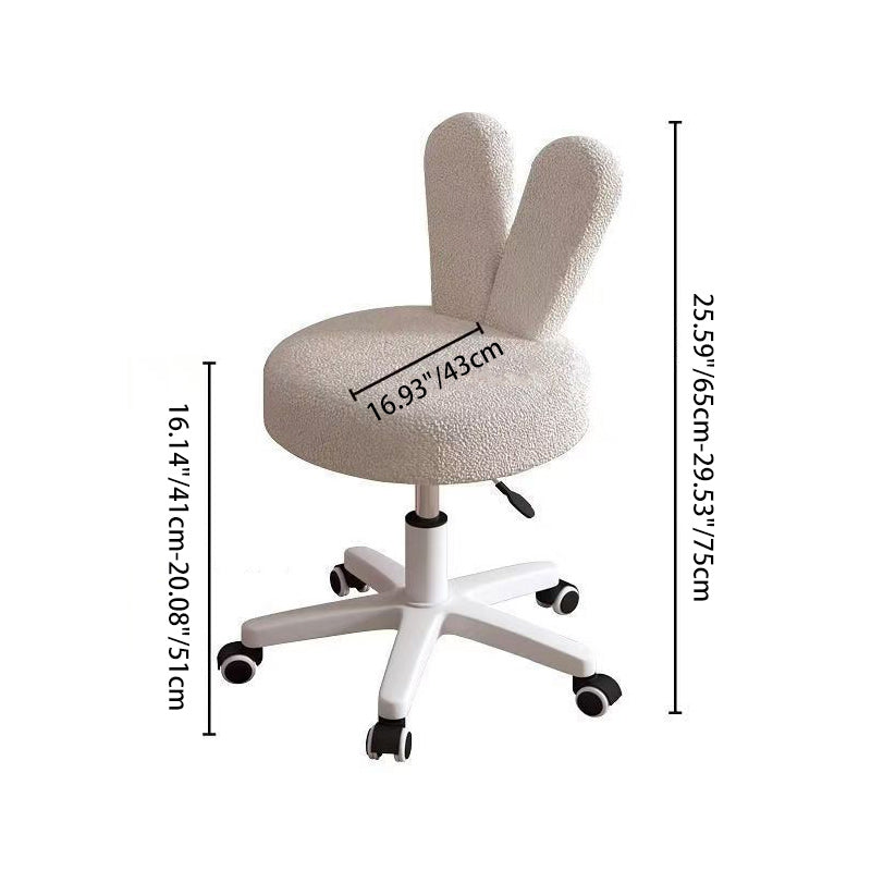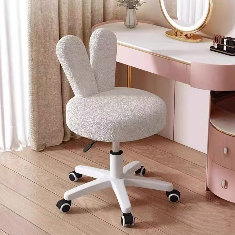 Contemporary Nordic Movable Liftable Rabbit Ears Round Lambswool Metal Nylon Vanity Stool Backrest For Bedroom