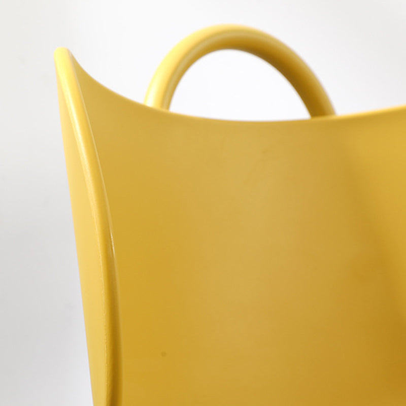 This Nordic-style accent chair features a sleek curved backrest and round seat, made from durable plastic and Iron with anti-scratch foot pads for floor protection. Available in gray, white, pink, yellow, and blue, it's perfect for bedrooms, living rooms, or balcony relaxation zones.