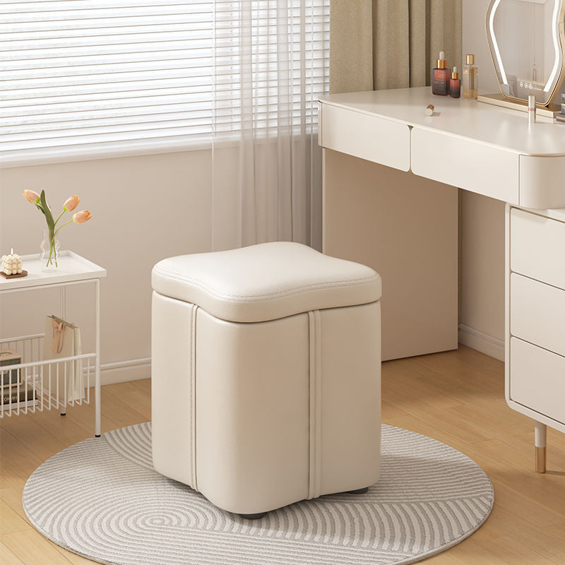 Contemporary Nordic Quad Flower Shape Tech Fabric Solid Wood Frame Vanity Stool For Bedroom