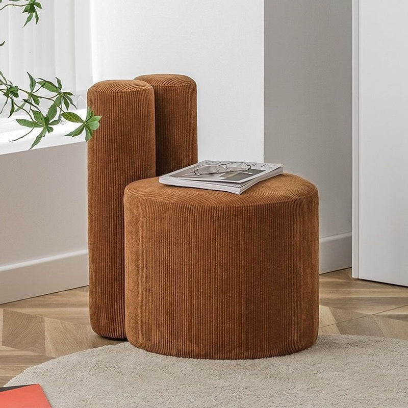 Contemporary Nordic Rabbit Ears Cylinder Corduroy Solid Wood Vanity Stool Backrest Armless For Bedroom
