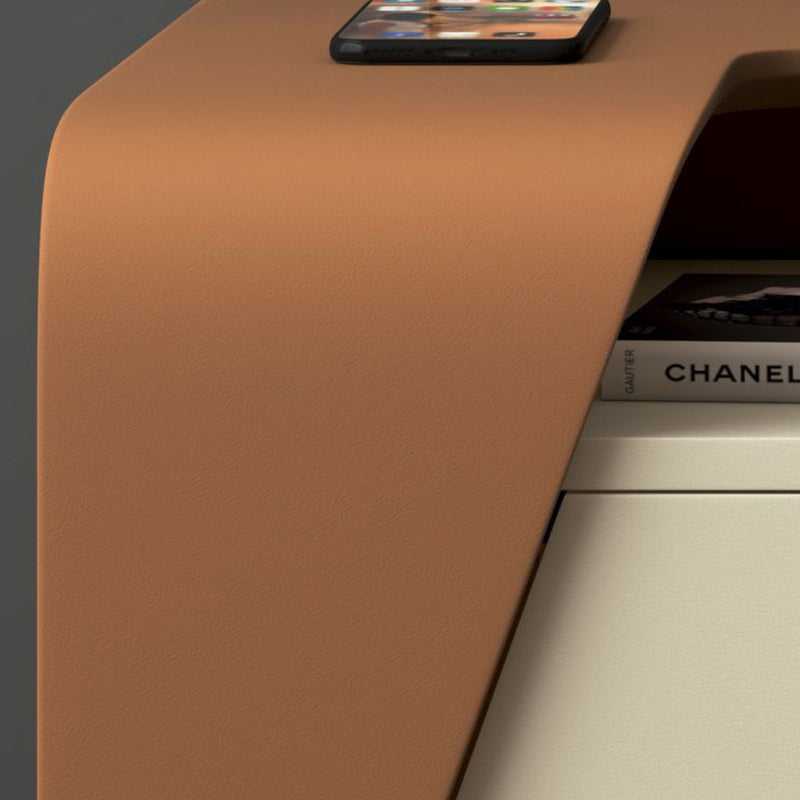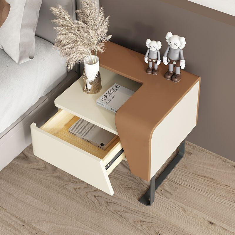 طاولة جانبية مستطيلة معاصرة من خشب الصنوبر والفولاذ الكربوني بتصميم نورديك مع درج واحد لغرفة النوم
