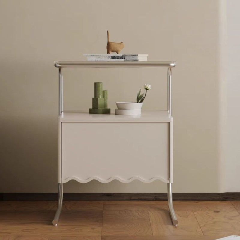 Contemporary Nordic Rectangular Glass Top Solid Wood Nightstand Drawer For Bedroom