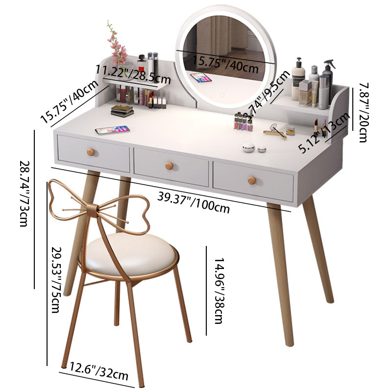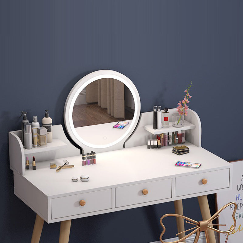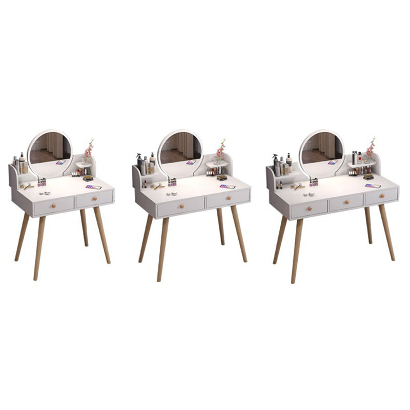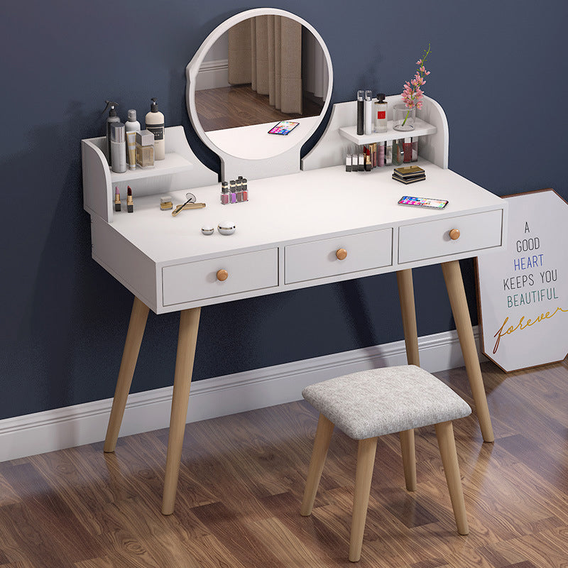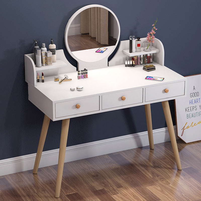 Contemporary Nordic Rectangular Solid Wood Metal Makeup Vanity 3-Drawer For Bedroom