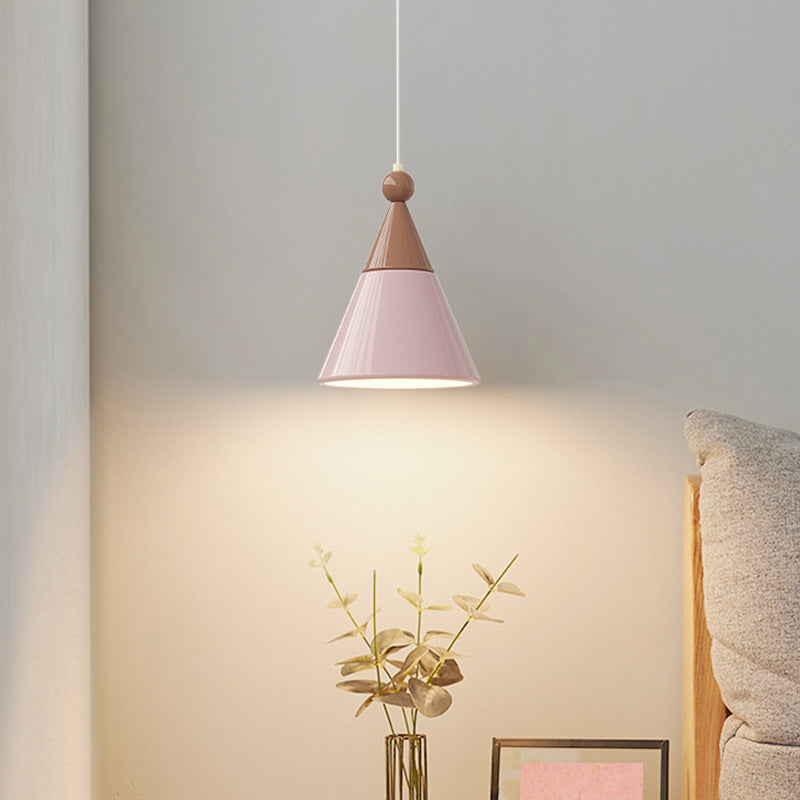 مصباح معلق عصري من الراتنج الاسكندنافي على شكل كرة مخروطية معدنية، مزود بمصباح واحد، مناسب لجانب السرير