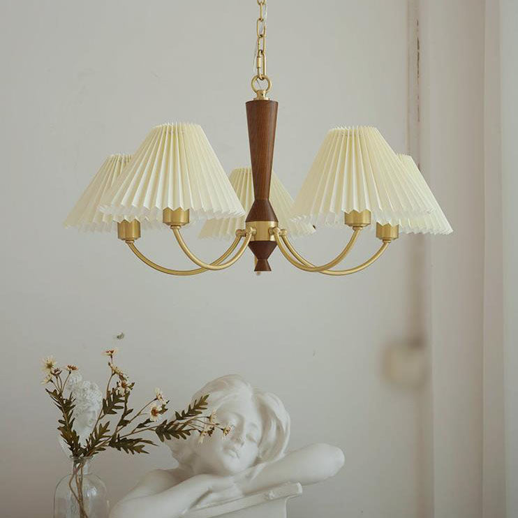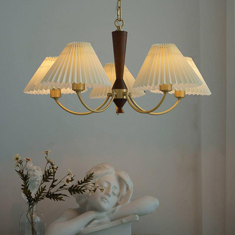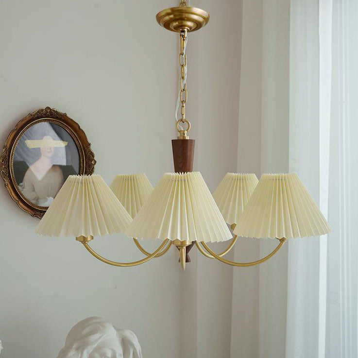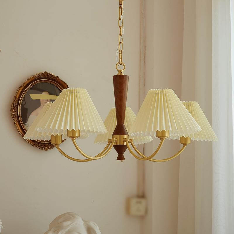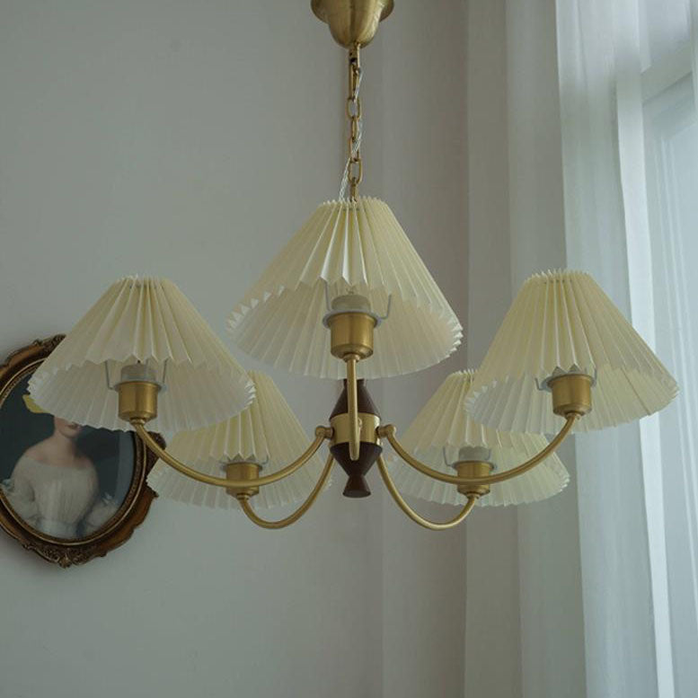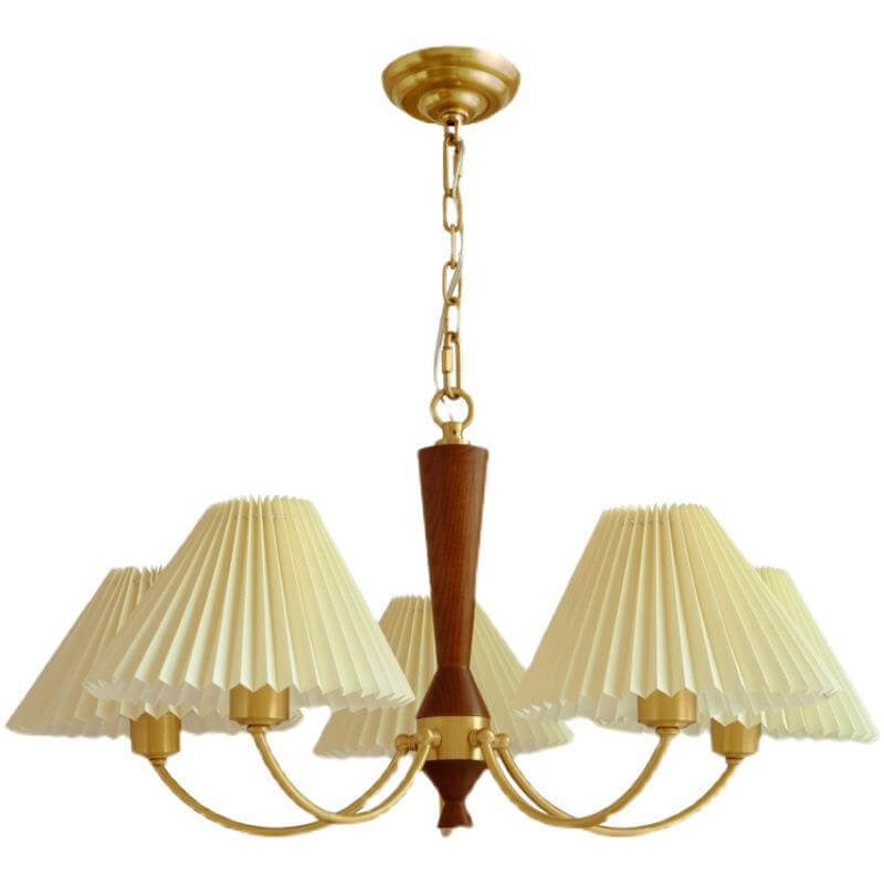 ثريا معاصرة بتصميم نورديك ريترو، مزودة بطيات نحاسية كاملة، بثلاثة مصابيح ونصف لغرفة المعيشة