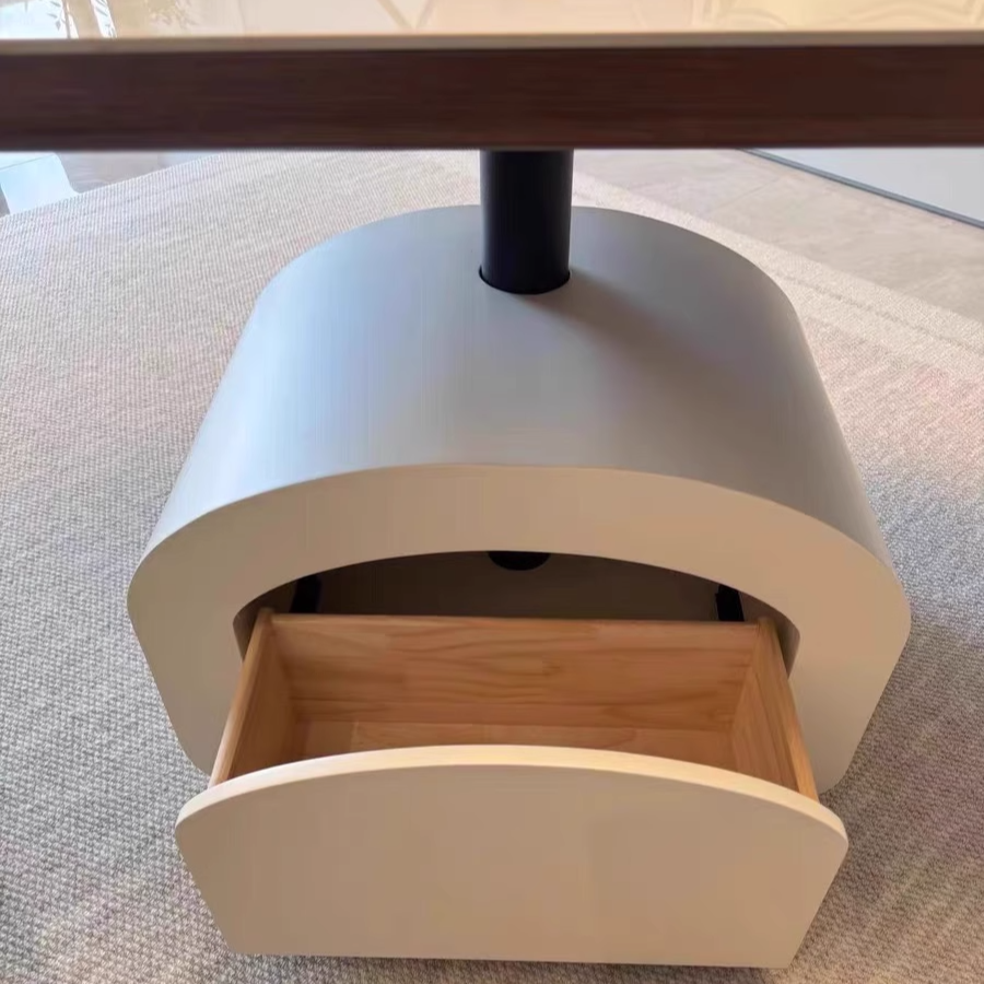 Contemporary Nordic Rock Slab & Wood Rectangular Coffee Table 1-Drawer With Lift-Top Function For Living Room & Bedroom