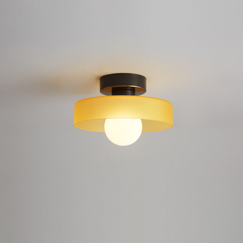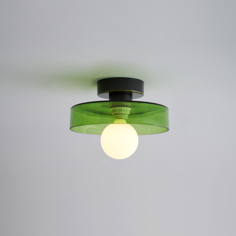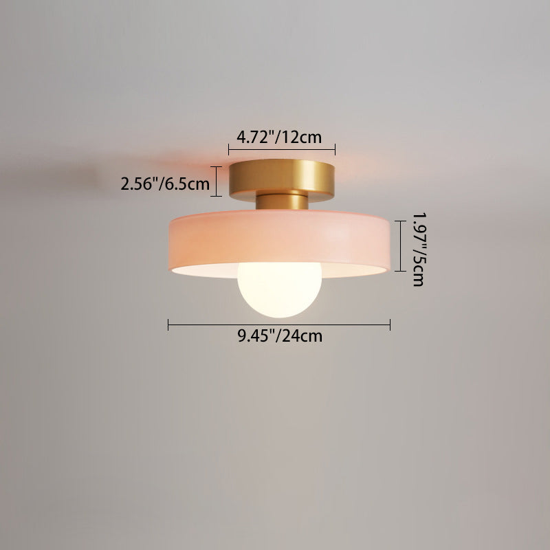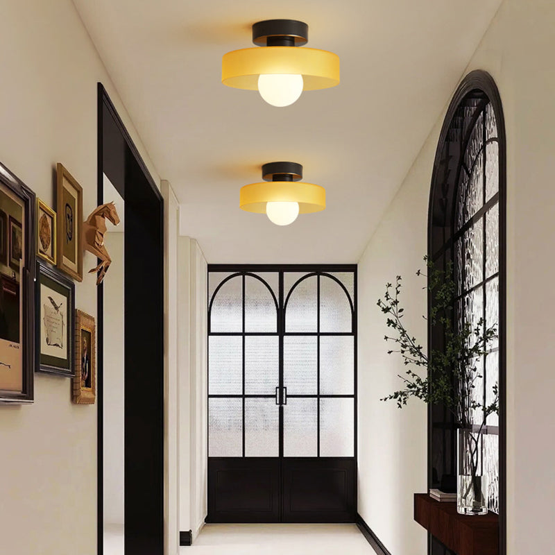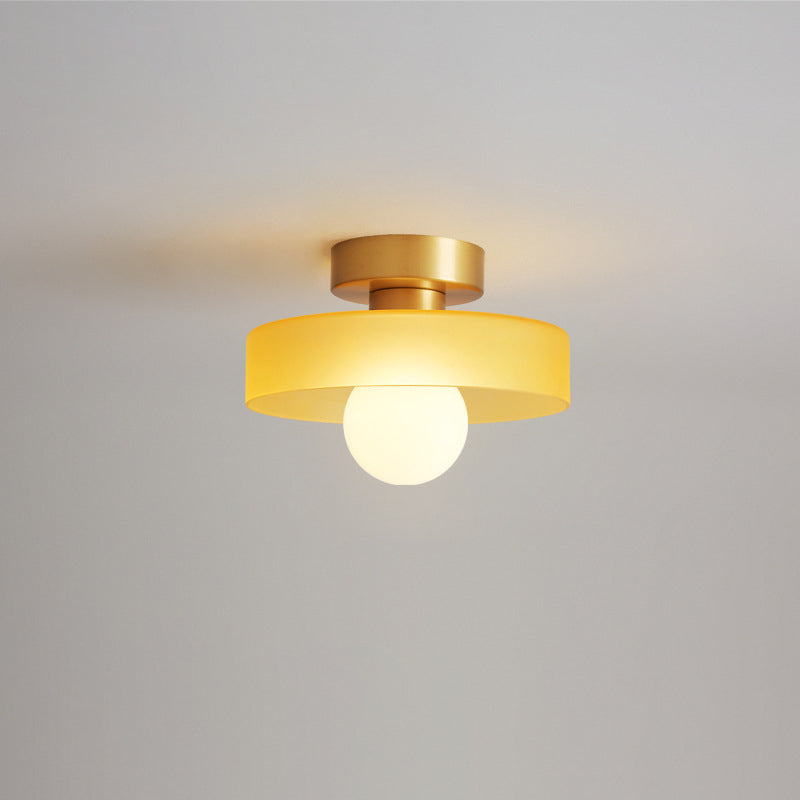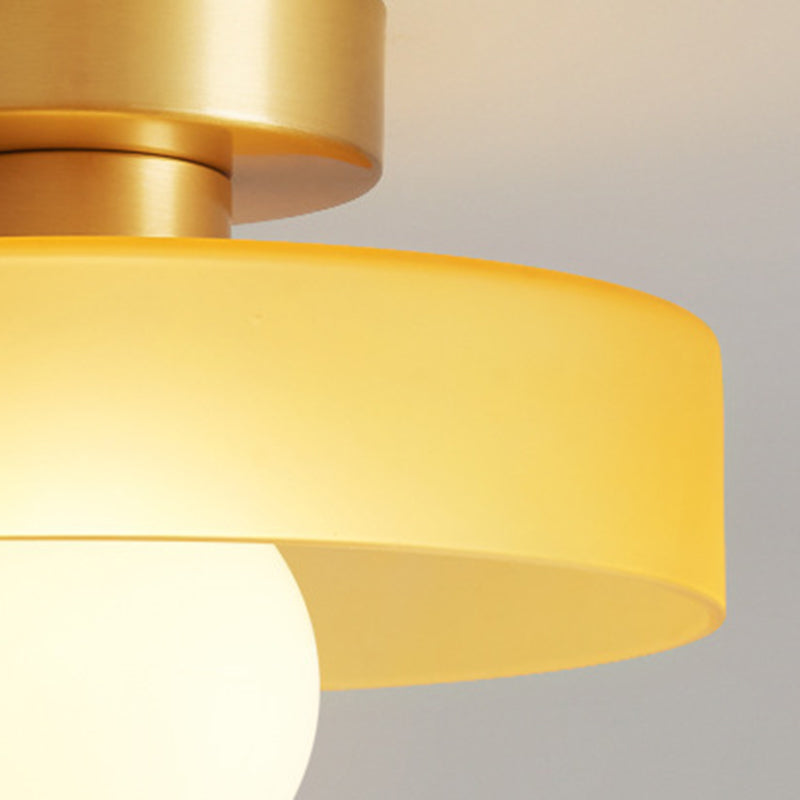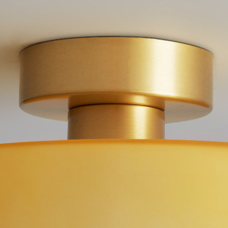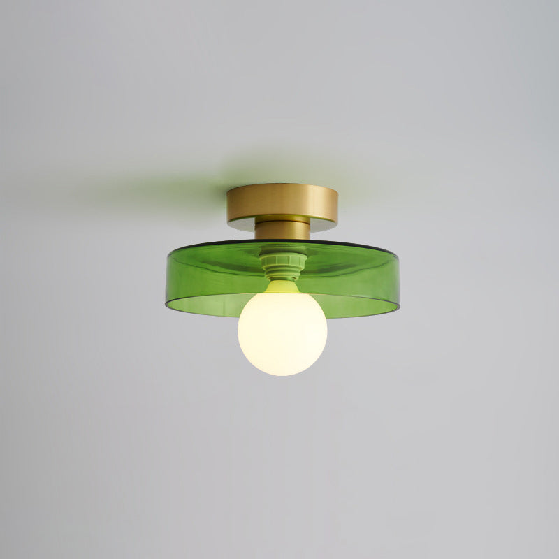مصباح سقف معاصر على شكل كرة مستديرة من النحاس والزجاج، مزود بمصباح واحد، مثبت بشكل شبه مسطح، للممر