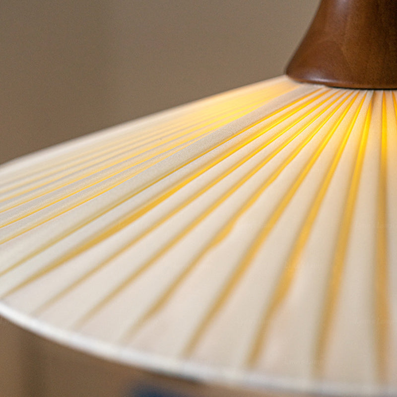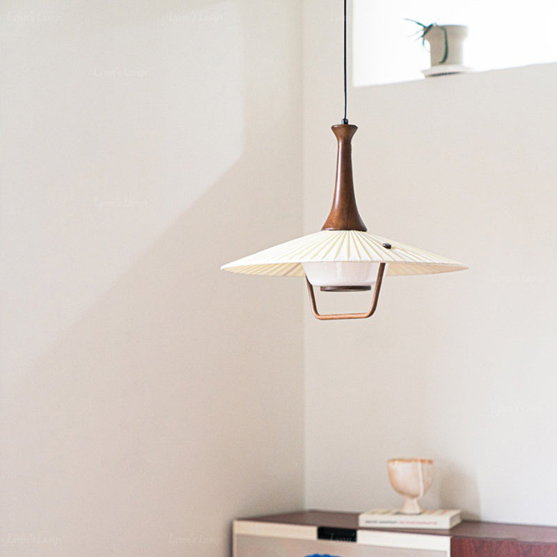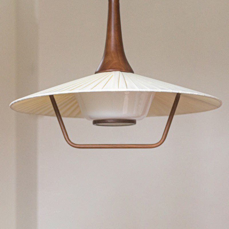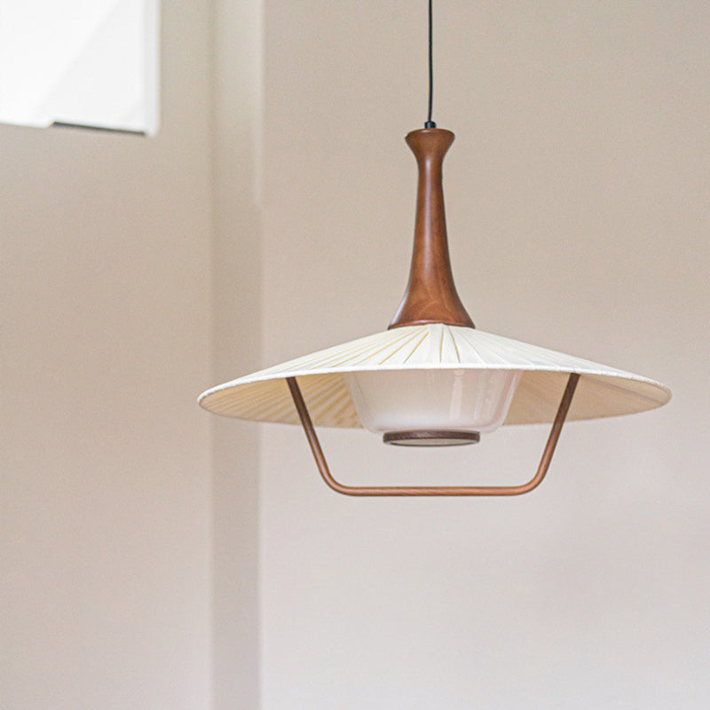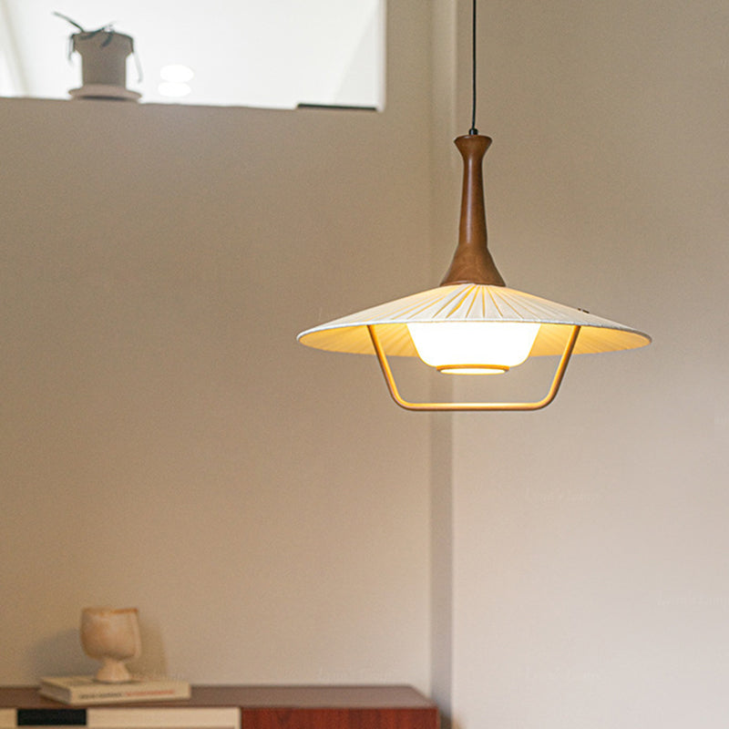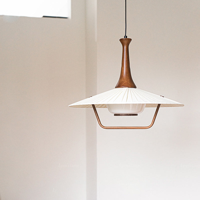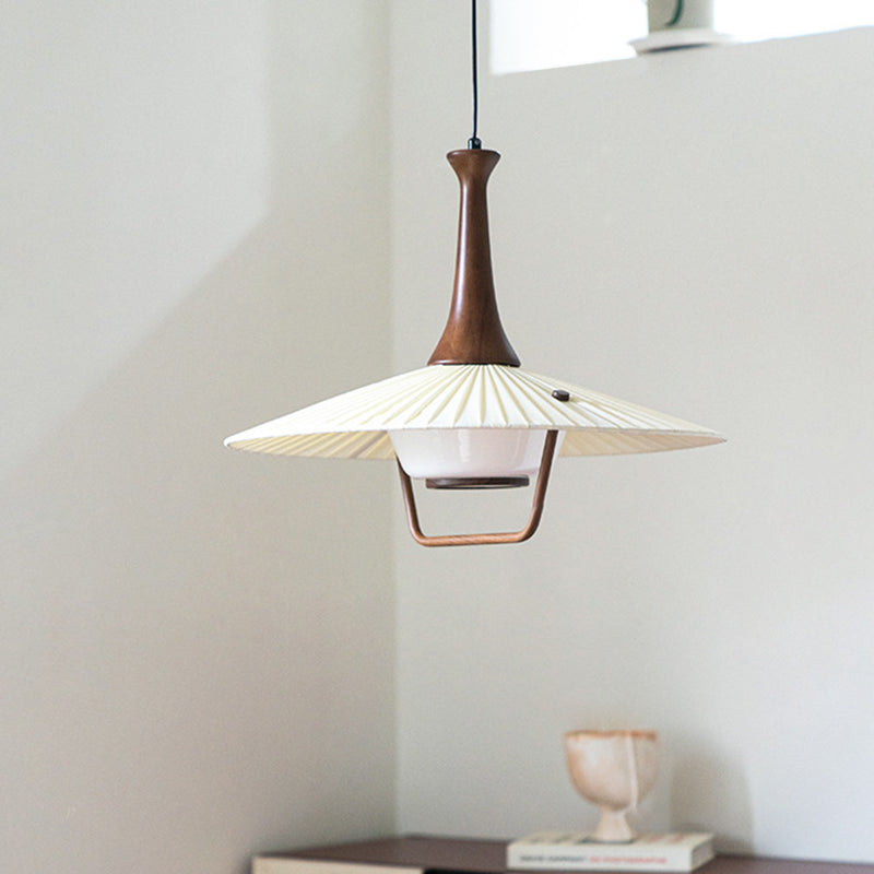 مصباح معلق عصري دائري على شكل صحن طائر مصنوع من الحديد والخشب الصلب والقماش والزجاج، لغرفة المعيشة