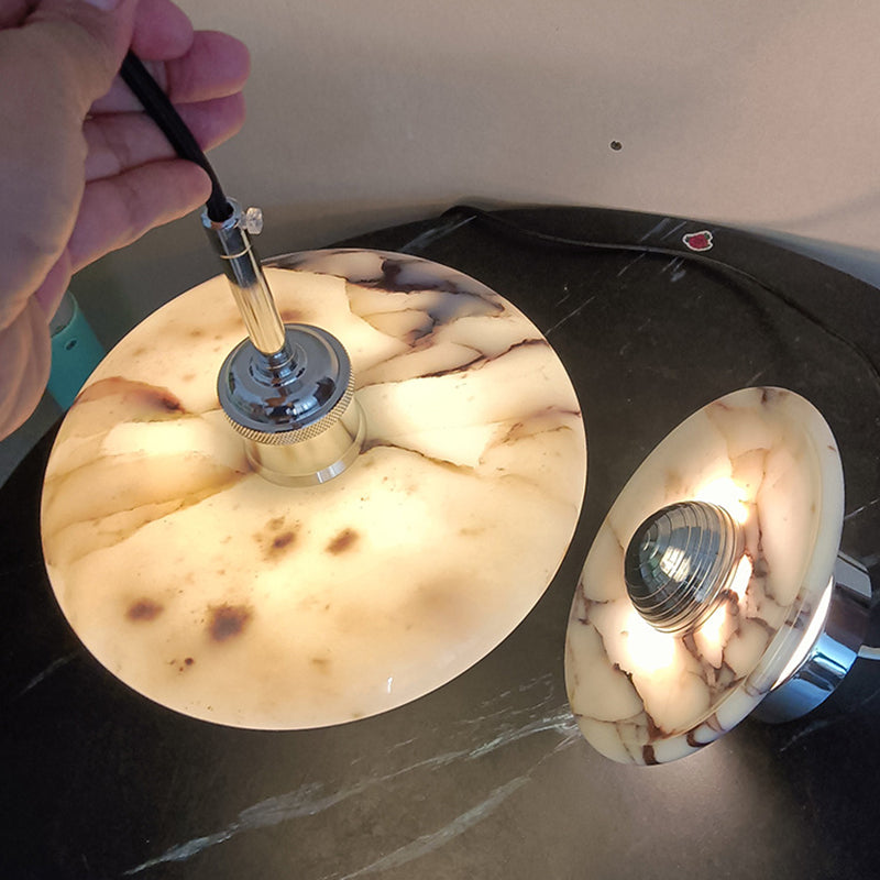 هذا المنتج مصنوع من رخام طبيعي خالص، ونقوشه عشوائية. لا نضمن أن يكون المصباح الذي تشتريه مطابقًا تمامًا للنقوش الموضحة في الصورة. شكرًا لتفهمكم.