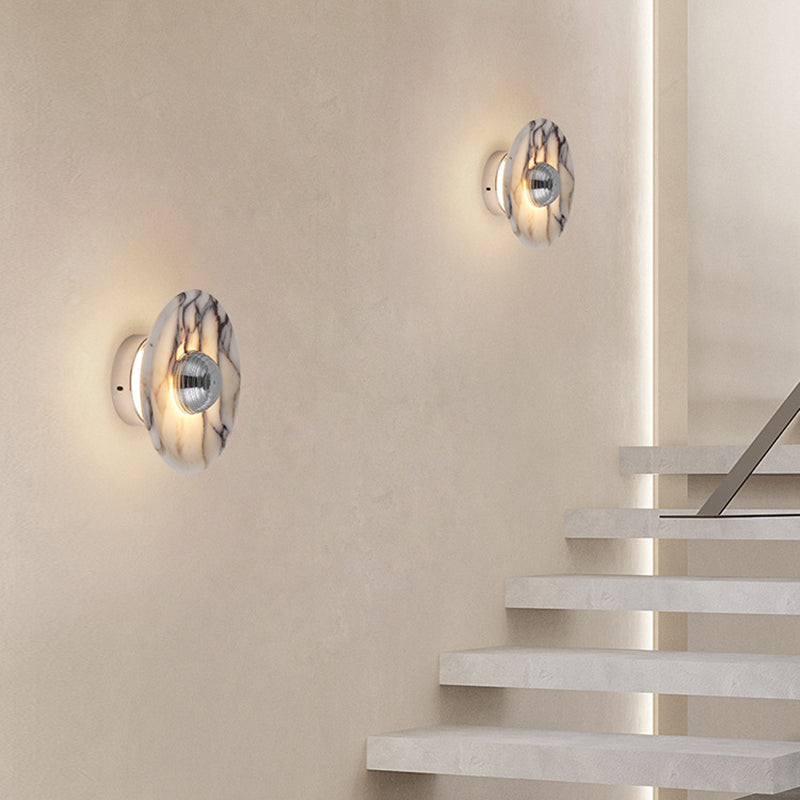 مصباح حائط LED دائري معاصر من الحديد والرخام لغرفة النوم